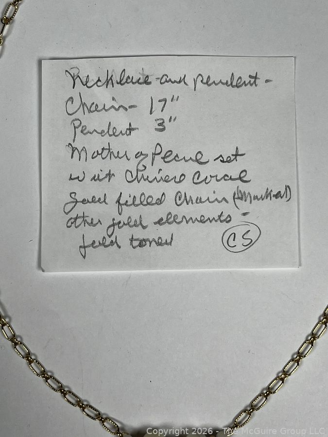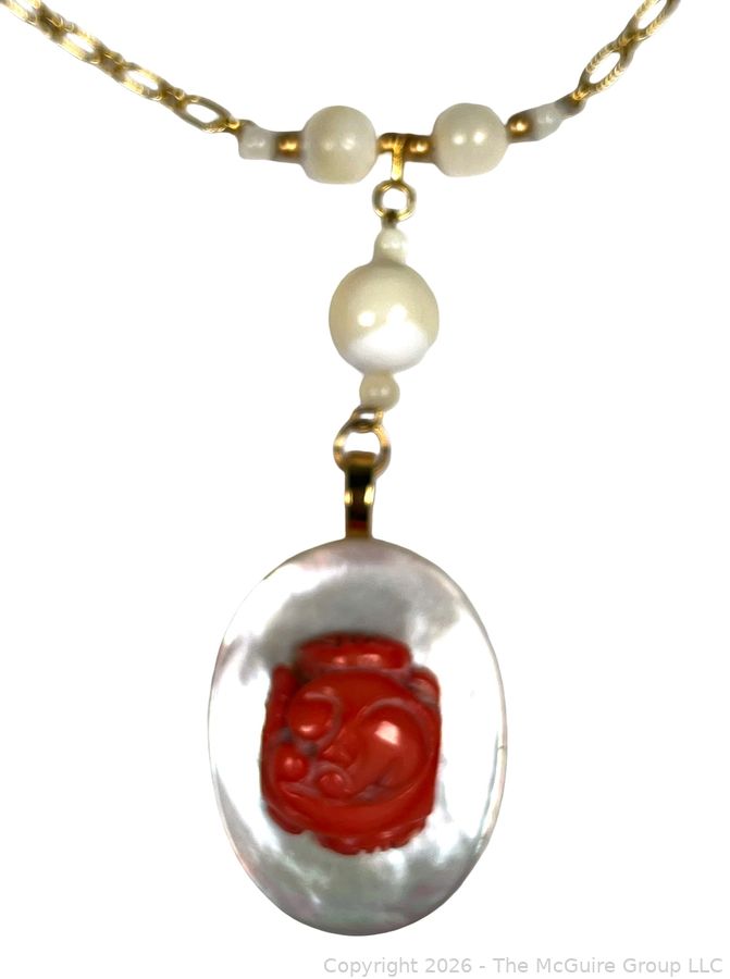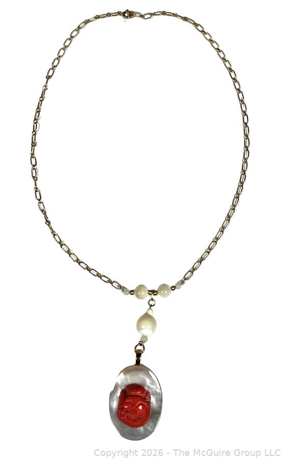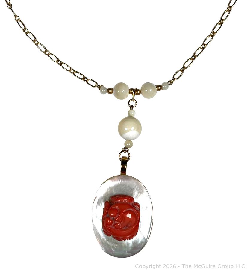 Lot #0189CS: Mother of Pearl with Chinese Coral Pendant Necklace