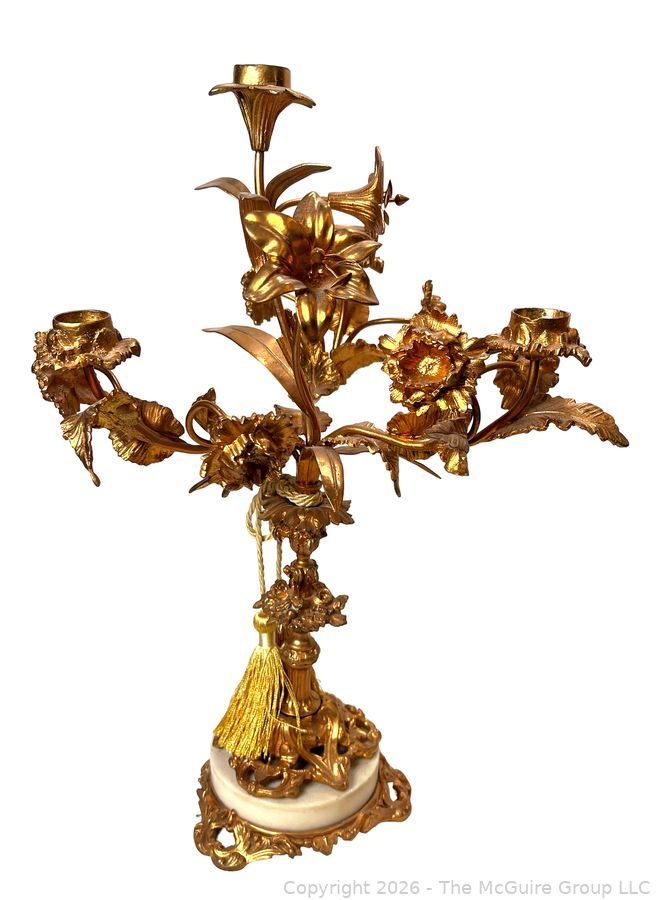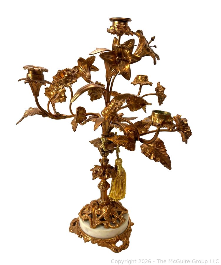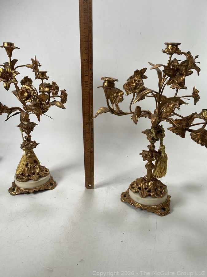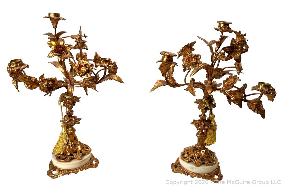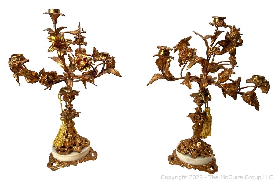 Lot #1006CP: Pair of French Gilt Bronze & Tole Floral Decorated Candelabras