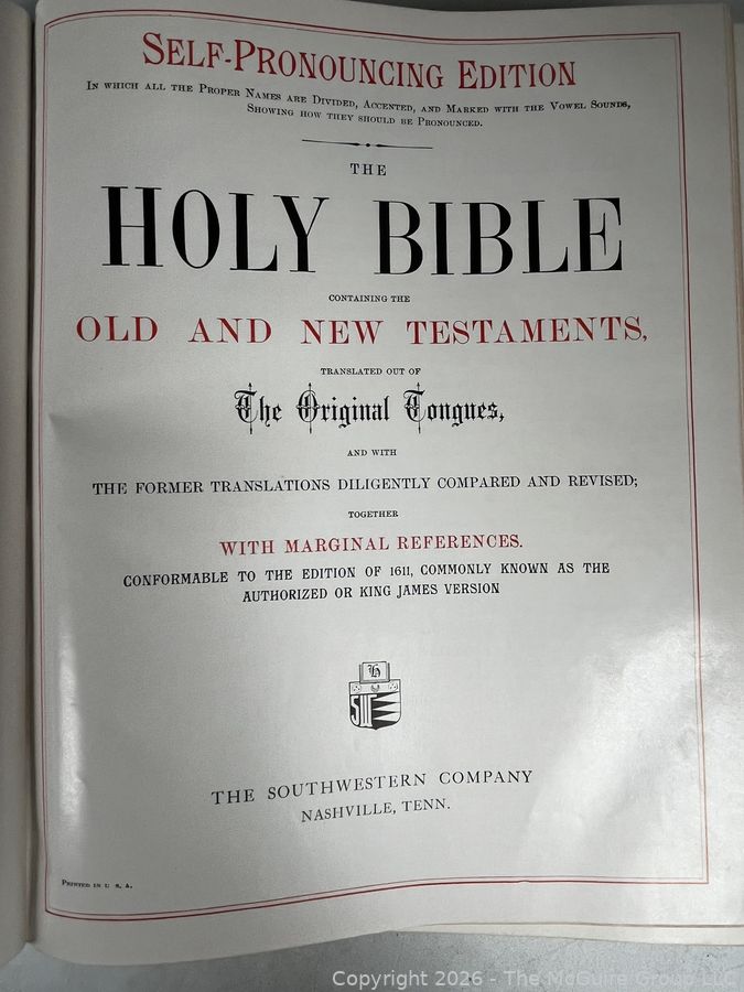 Lot #0444PB: Pictorial Family Bible Self-Pronouncing Edition The Southwestern Company