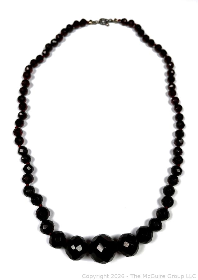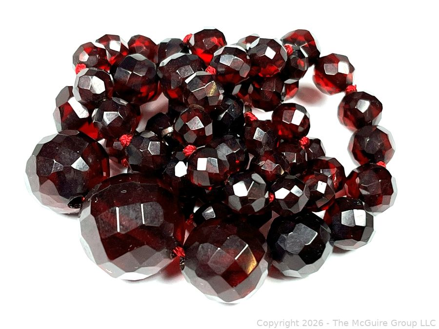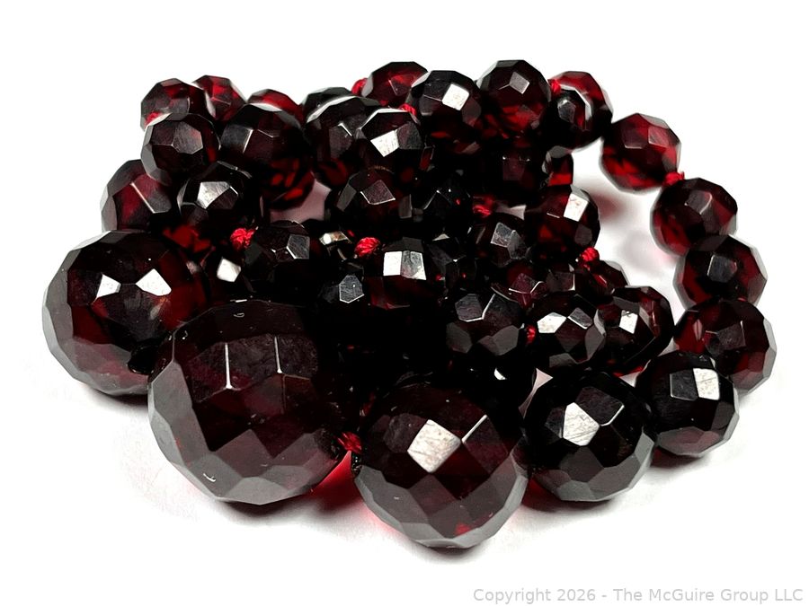 Lot #0246CS: Red Cherry Amber Graduated Bead Necklace.