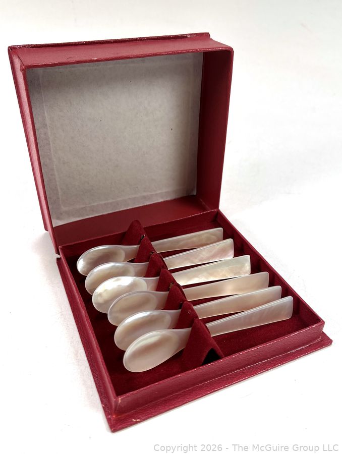 Lot #0095PB: Set of Six (6) Mother-of-Pearl Caviar Spoons in Box