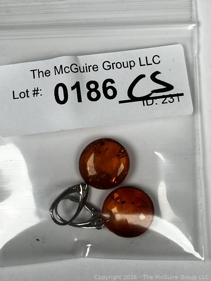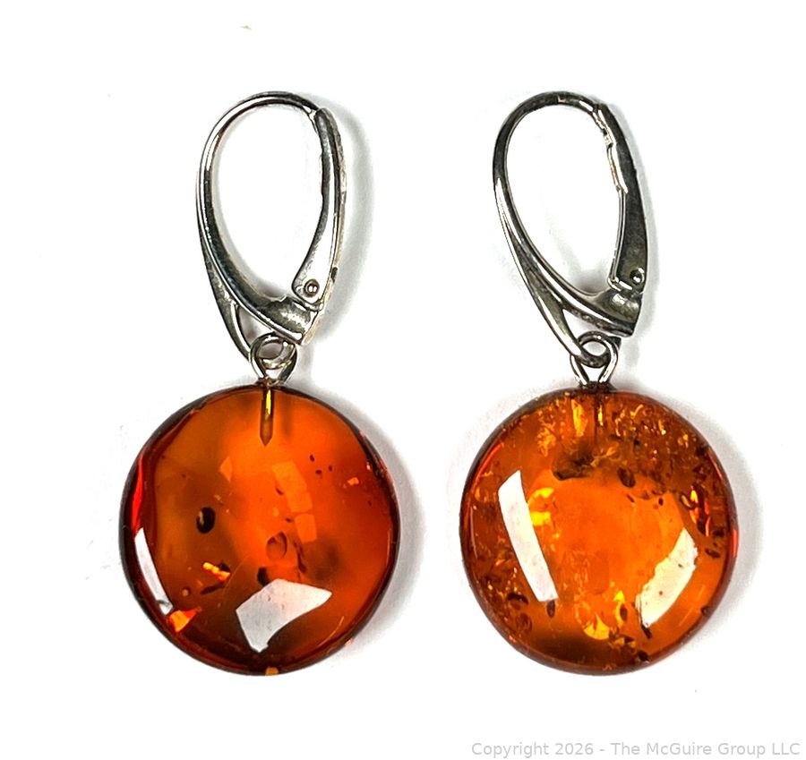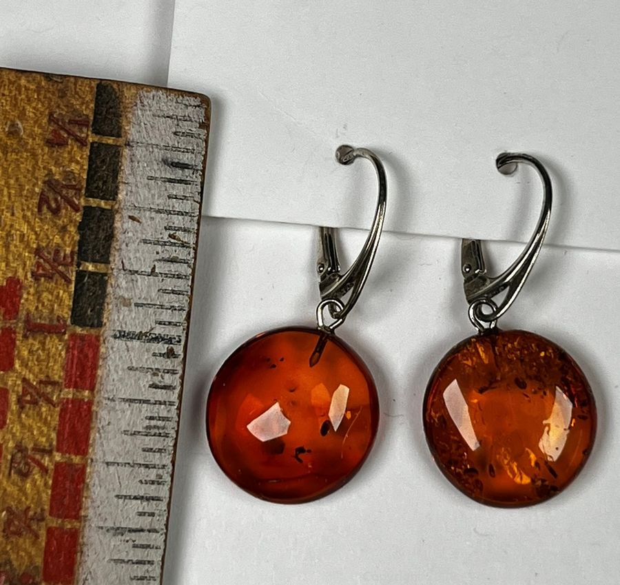 Lot #0186CS: Sterling and Amber Drop Earrings