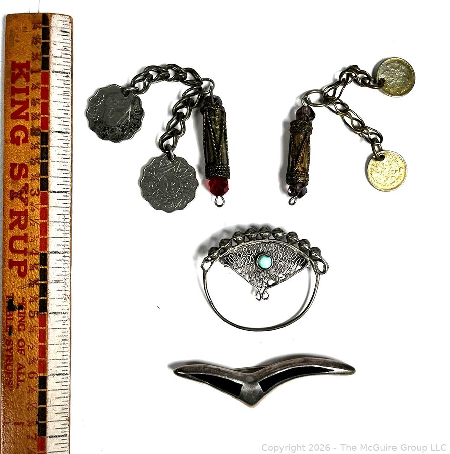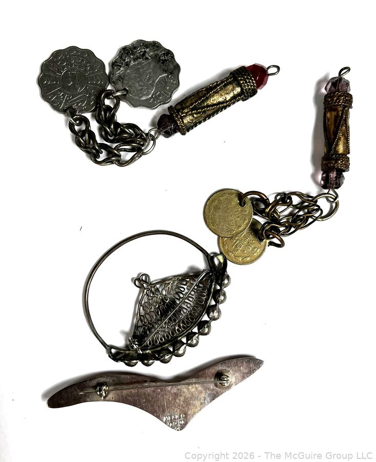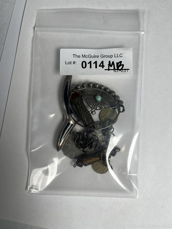 Lot #0114MB: Sterling Silver Brooches and Two Talisman Charms
