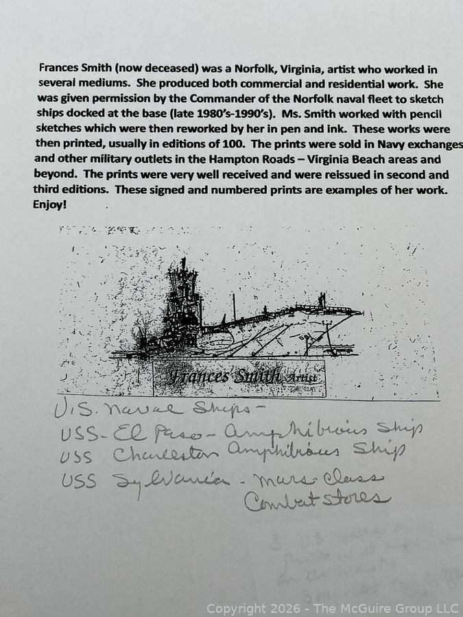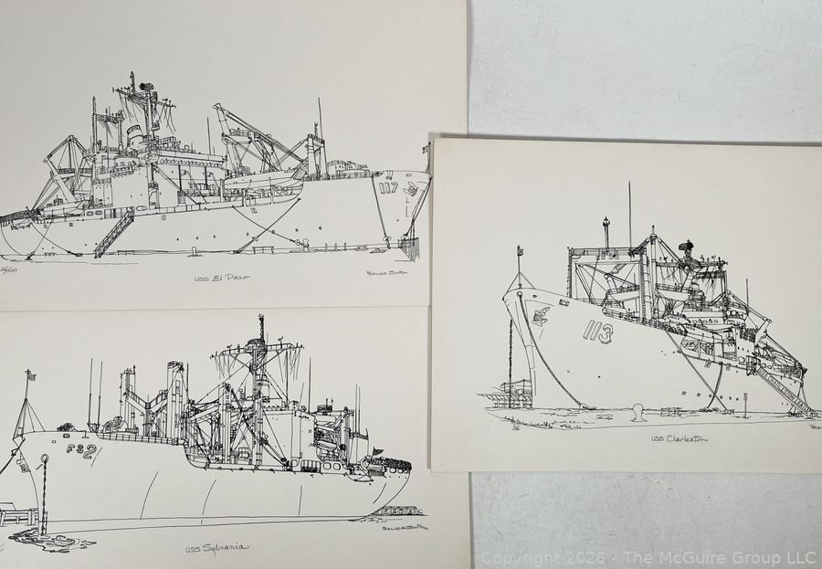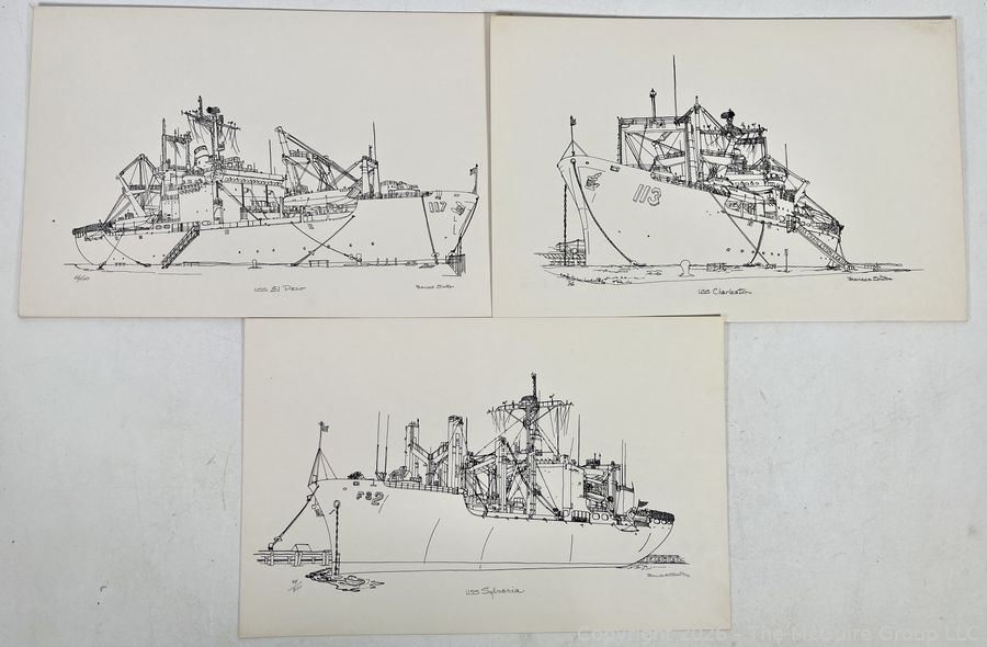 Lot #0176CS: Three (3) Naval Ship Art Prints Signed and Numbered in Pencil by Artist Frances Smith. 11" X 17".