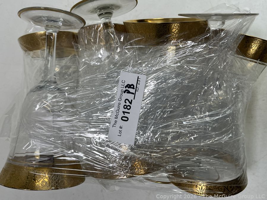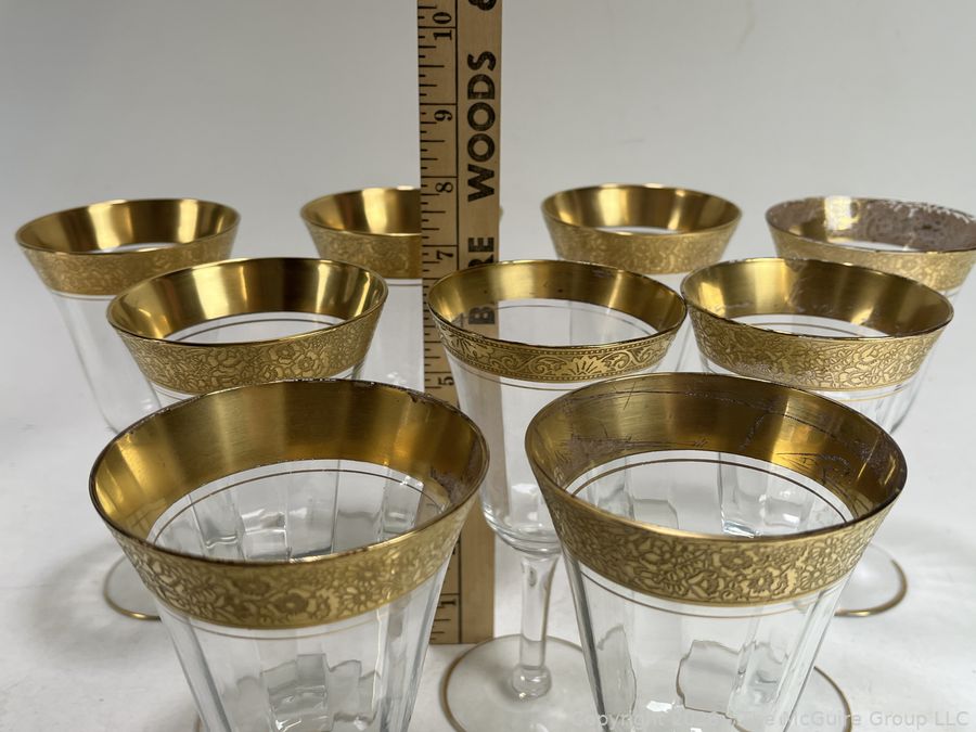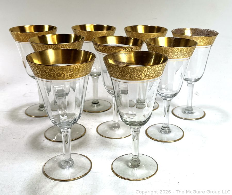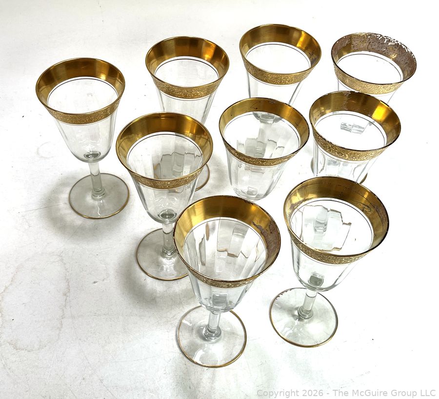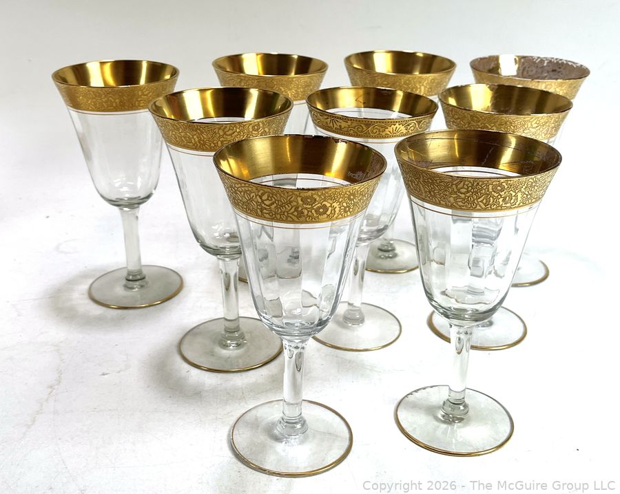 Lot #0182PB: Tiffin Franciscan Wine Goblets with Embossed Gold Rims