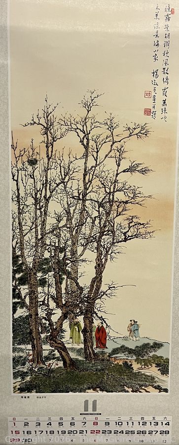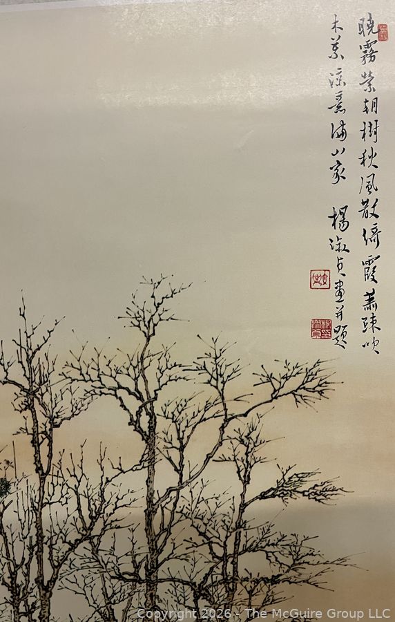 Lot #0349PB: Traditional Chinese Ink Painting Titled Secluded Living in Autumn Mountains by Pu Ru (also known as Pu Xinyu). Hanging Scroll