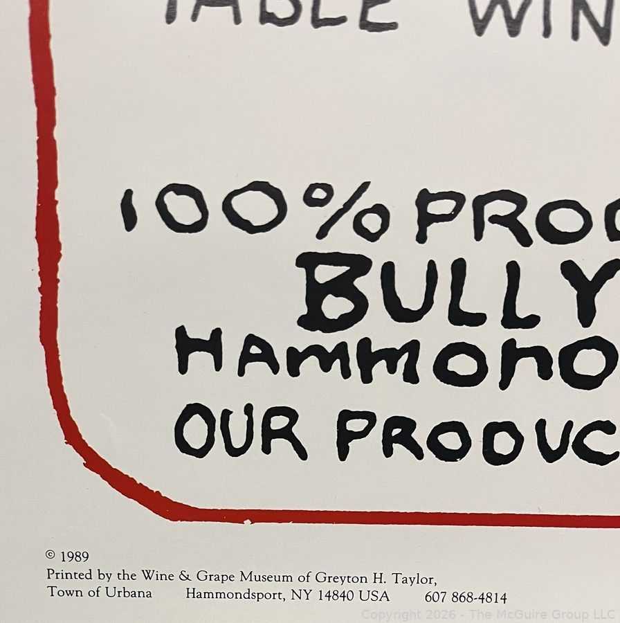 Lot #0283PB: Unframed Bully Hill Vineyards, Love Goat, Poster 1982, 17 x 22"
