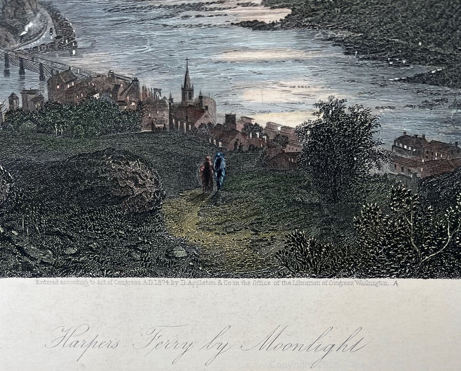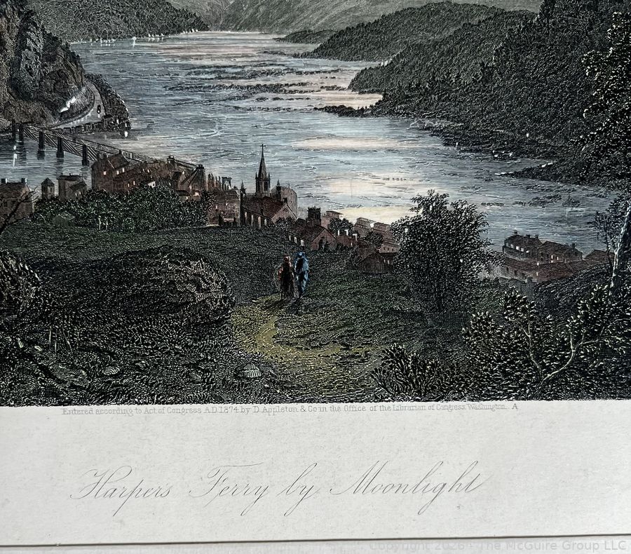Lot #0450PB: Unframed Colored Lithograph of Harper's Ferry by Moonlight, 1874. 12" x 16"