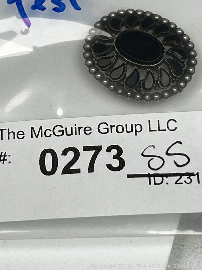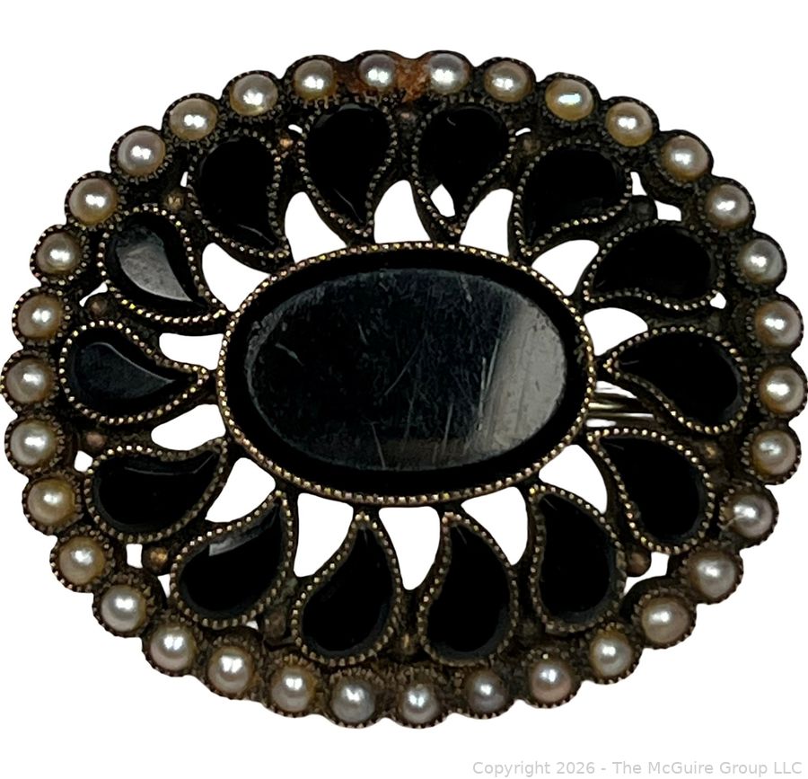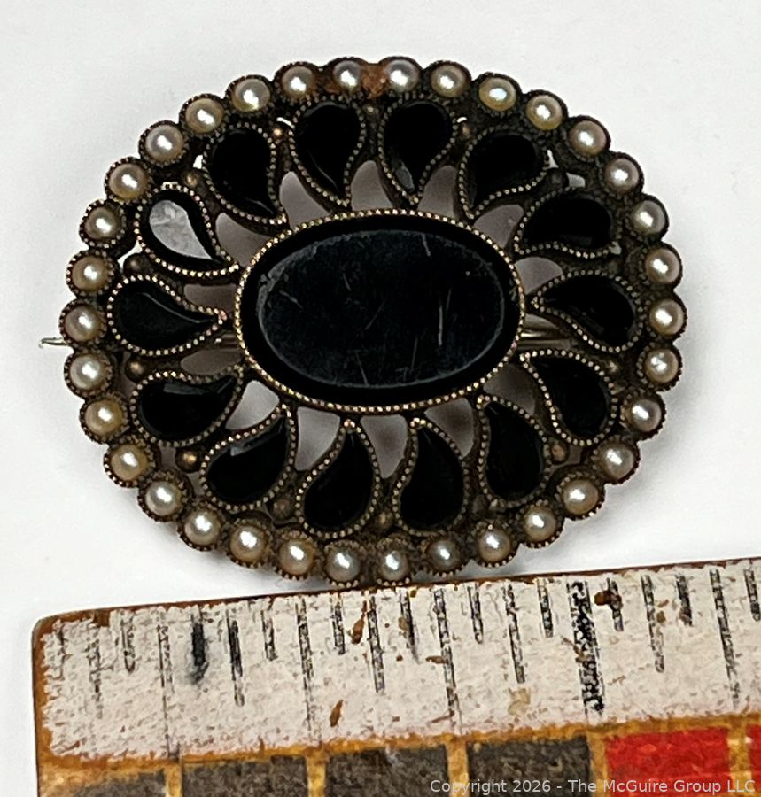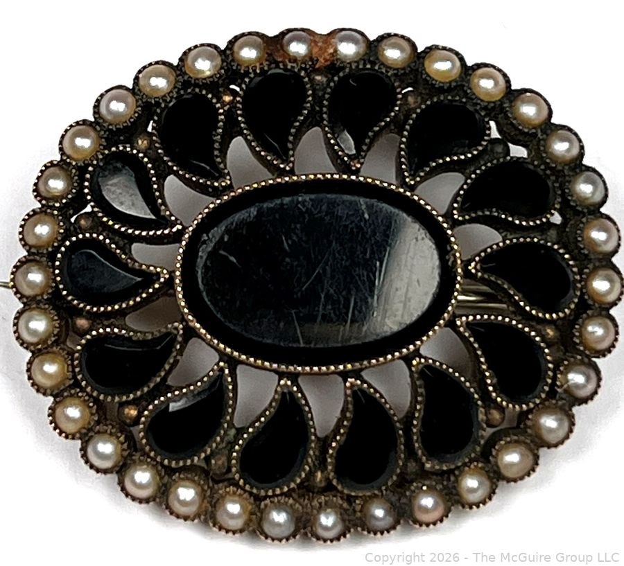 Lot #0273SS: Victorian 18KT Gold with Onyx and Pearls Mourning Brooch