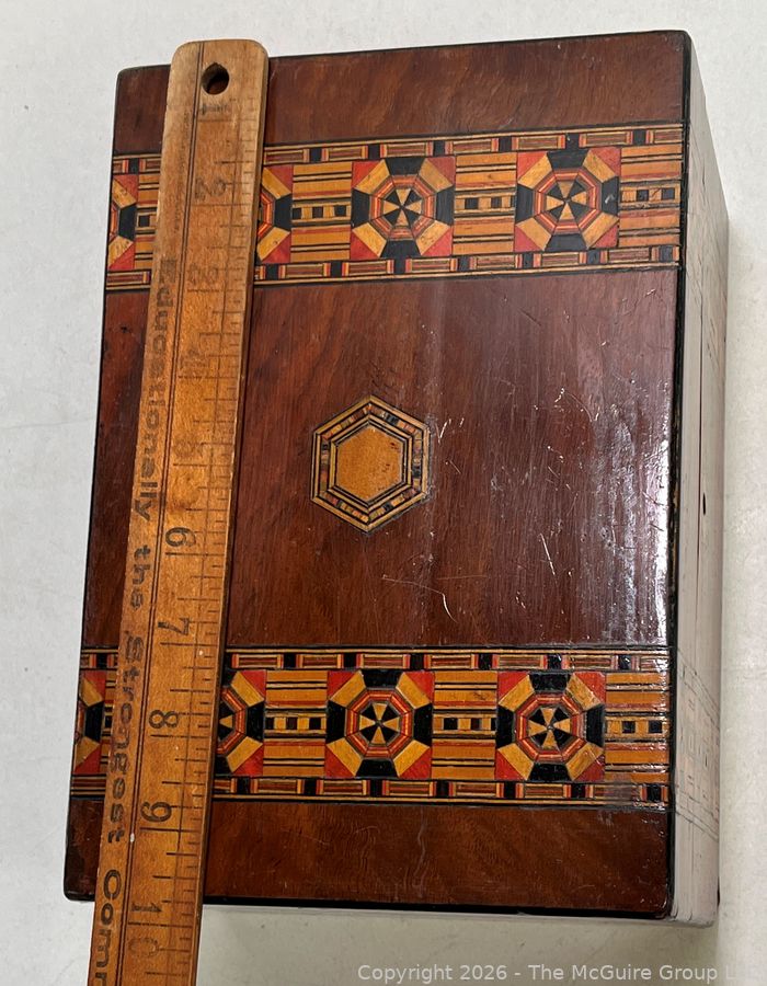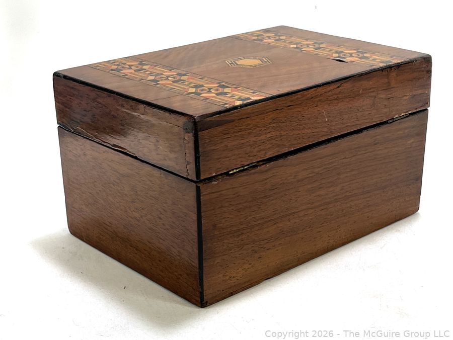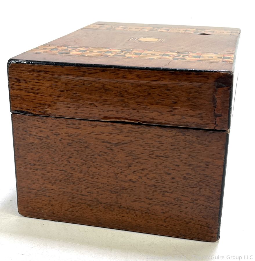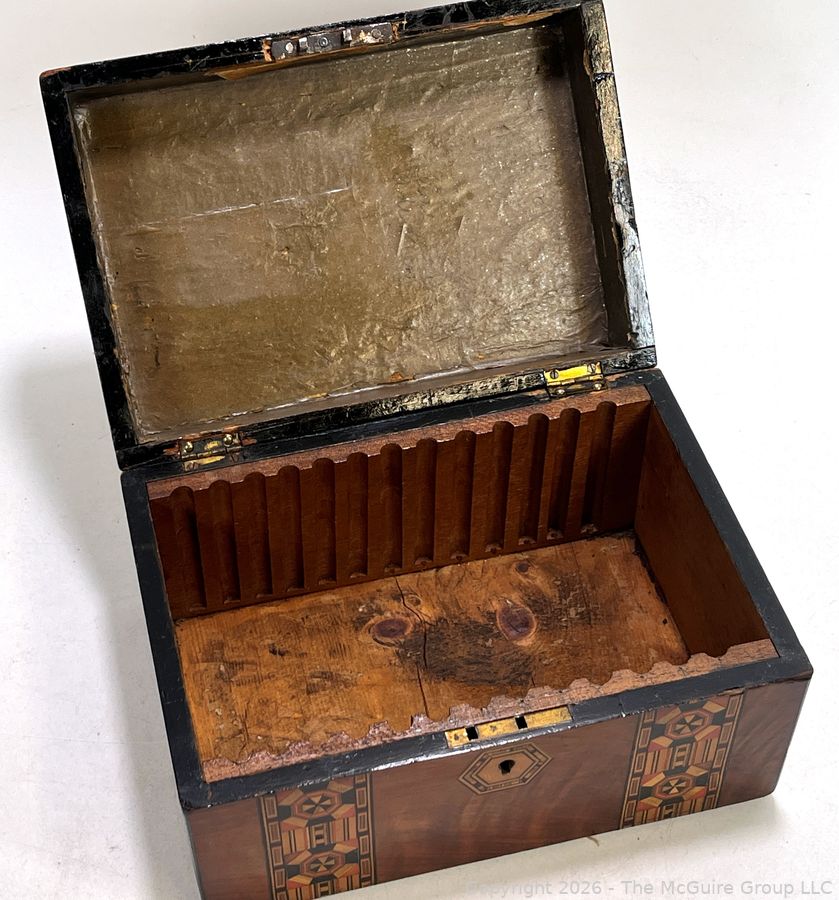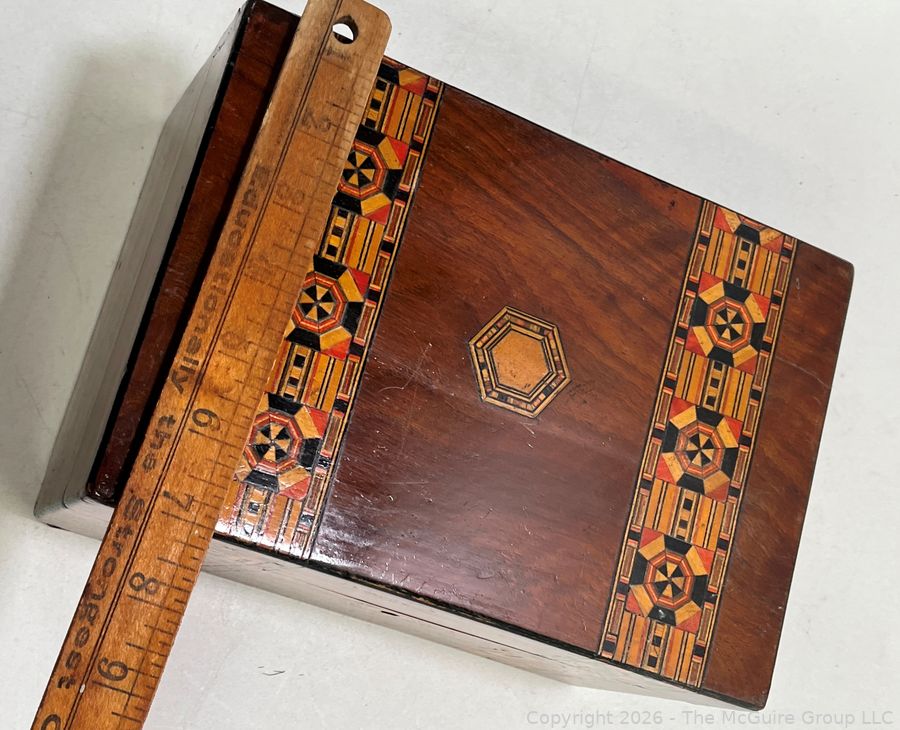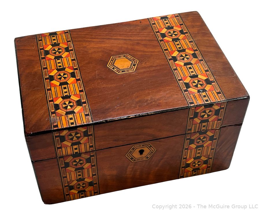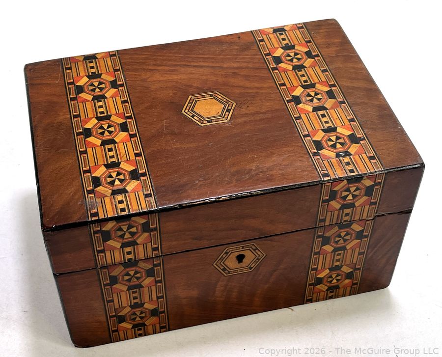 Lot #0042CP: Victorian Inlaid Marquetry Turnbridge Ware Box with Hinged Lid