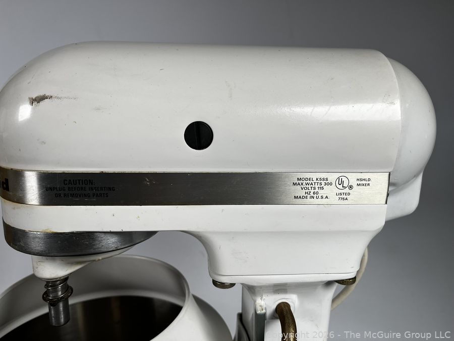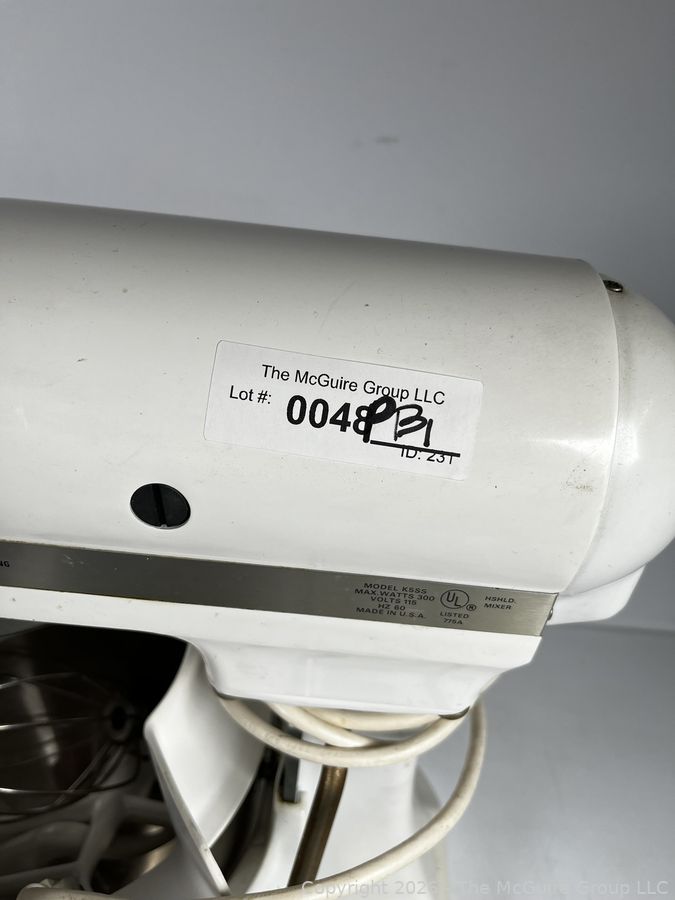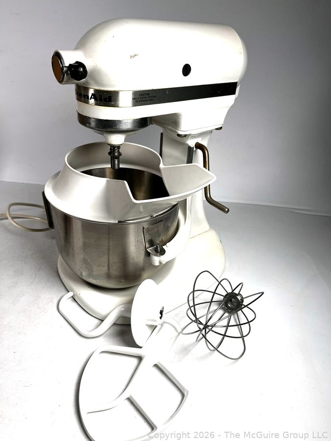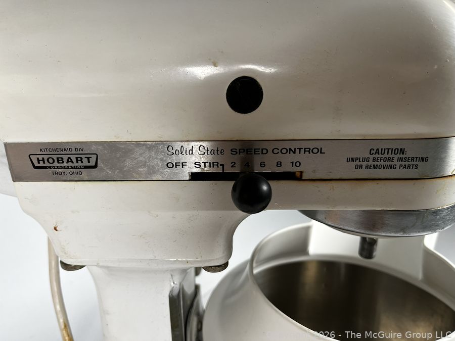 Lot #0048PB: White KitchenAid Hobart K45 Stand Mixer with Bowl & Attachments