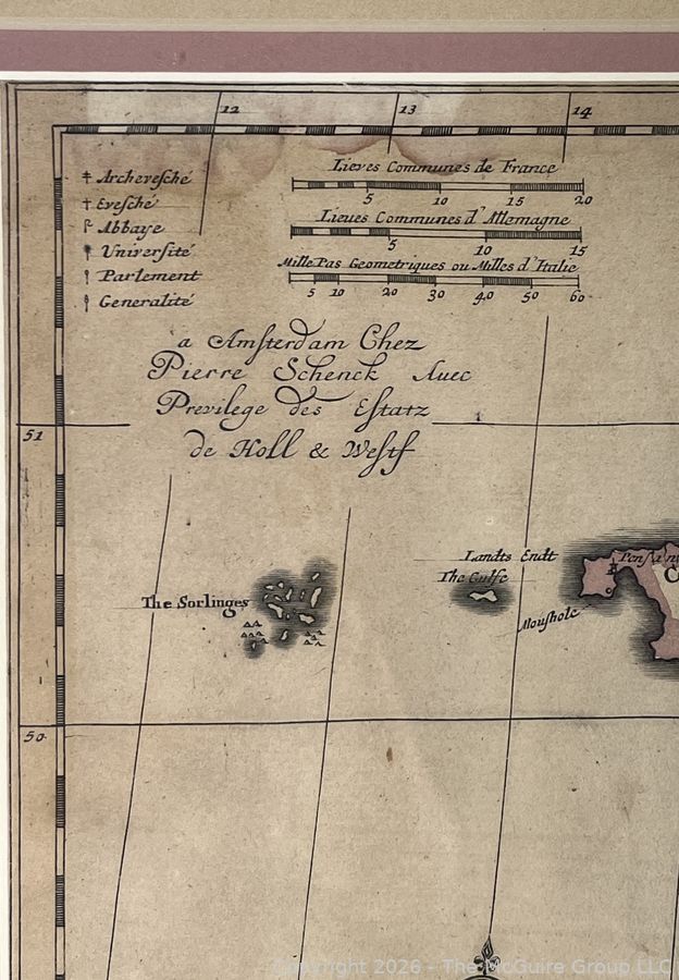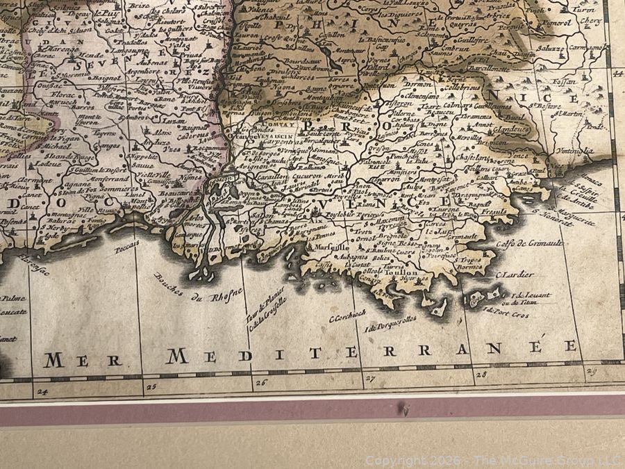 Lot #0023DW: 1695 Map of France by Nicolas Sanson Published by German Engraver and Cartographer Peter Schenck