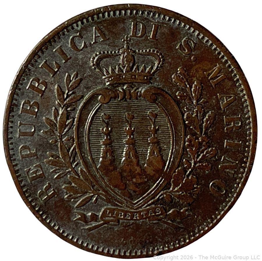 Lot #0187CM: 1893 San Marino R 10 Centesimi Coin