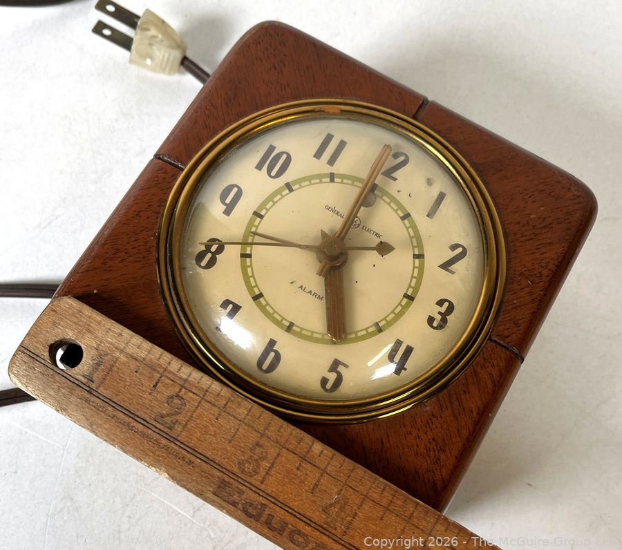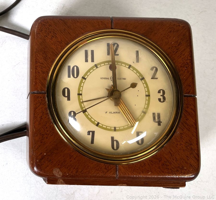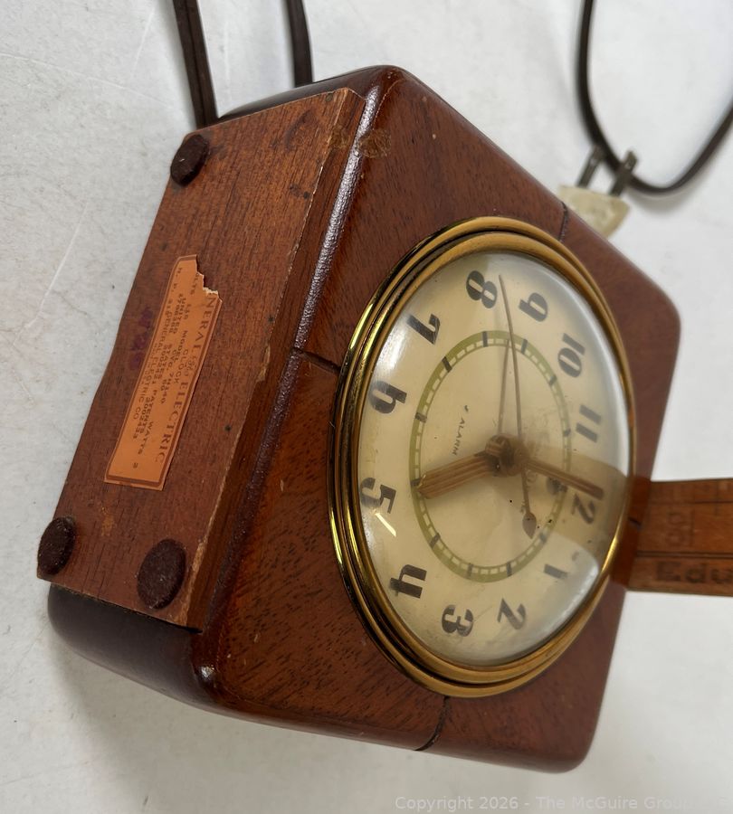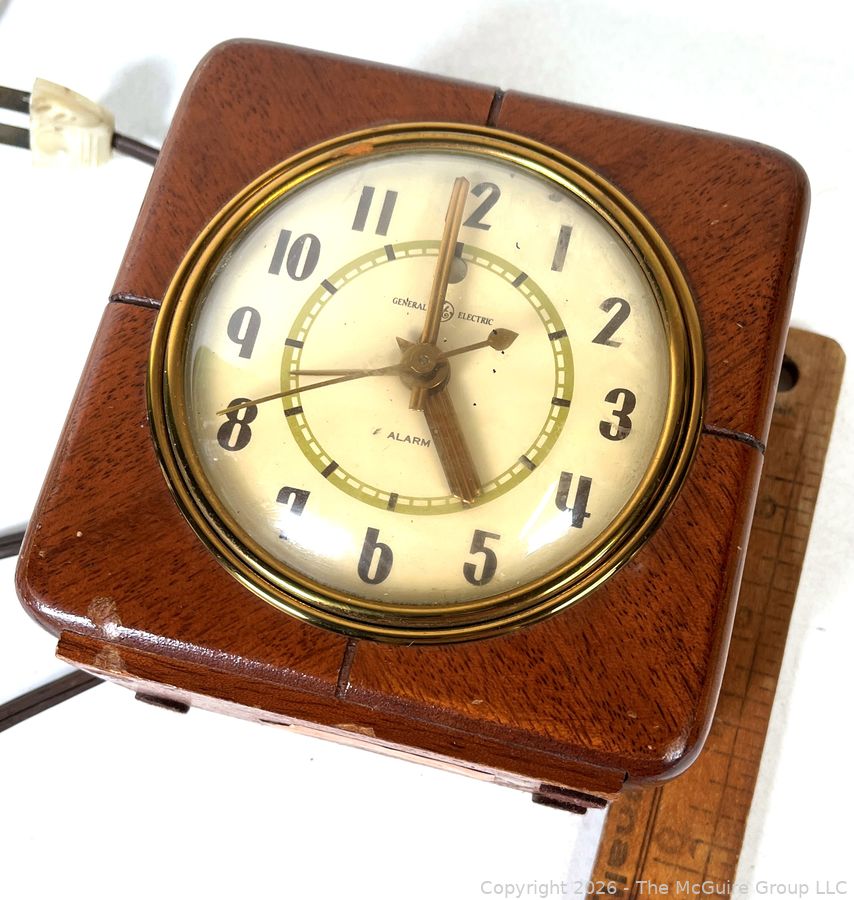 Lot #0149FB: 1947 General Electric Wood Square Alarm Clock Model 7H140