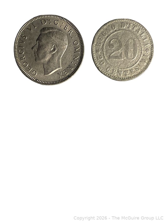 Lot #0254CM: 1948 British 1 Shilling coin and 1894 Italian 20 Coin