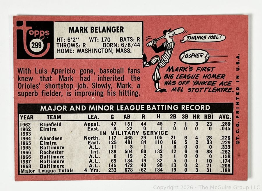 Lot #0326CM: 1969 Topps #326 Mark Belanger Baltimore Orioles Baseball Card