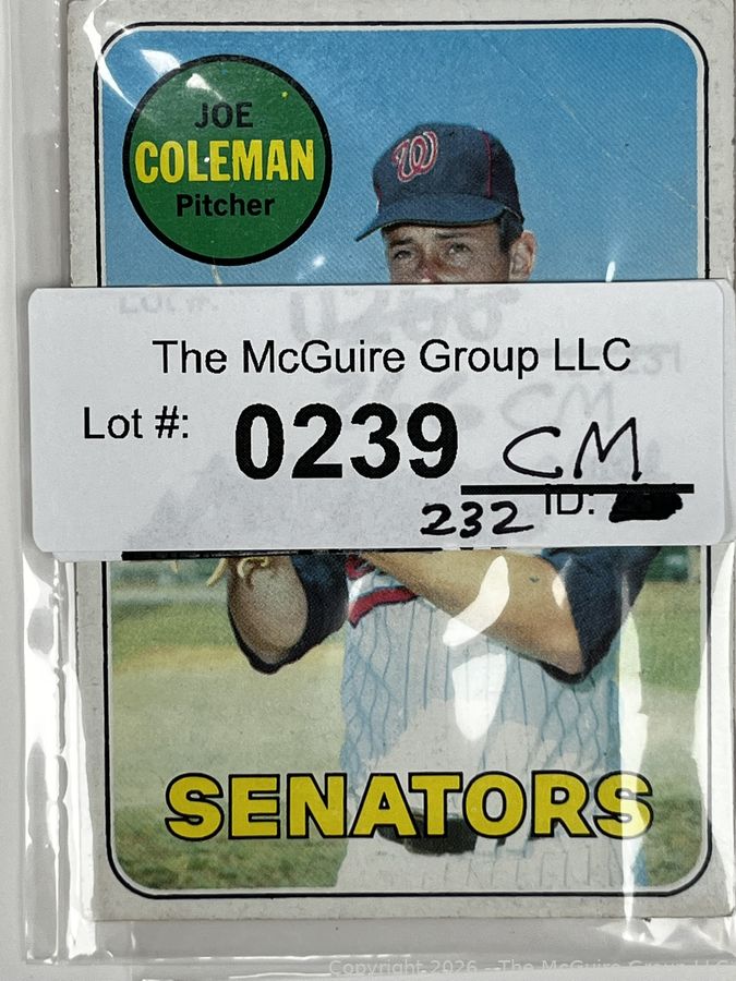 Lot #0239CM: 1969 Topps Joe Coleman 246 Senators Baseball Card