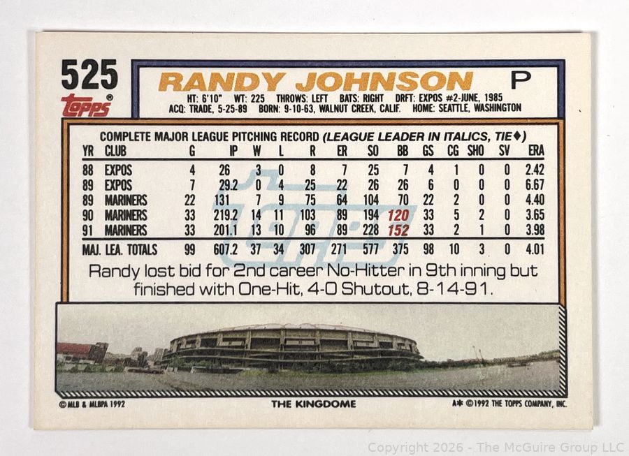 Lot #0118CM: 1992 Randy Johnson Topps Baseball Card. Mariners