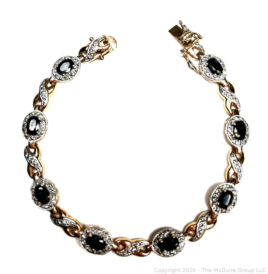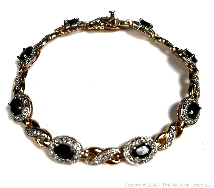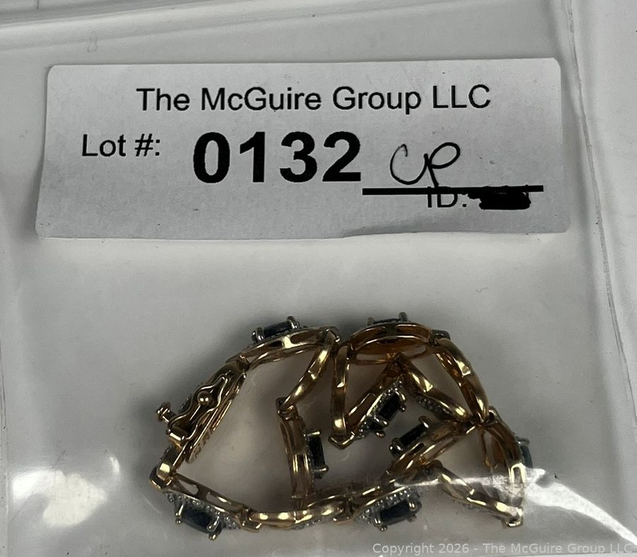 Lot #0132CP: Blue Gemstone Sterling Silver Vermeil Tennis Bracelet