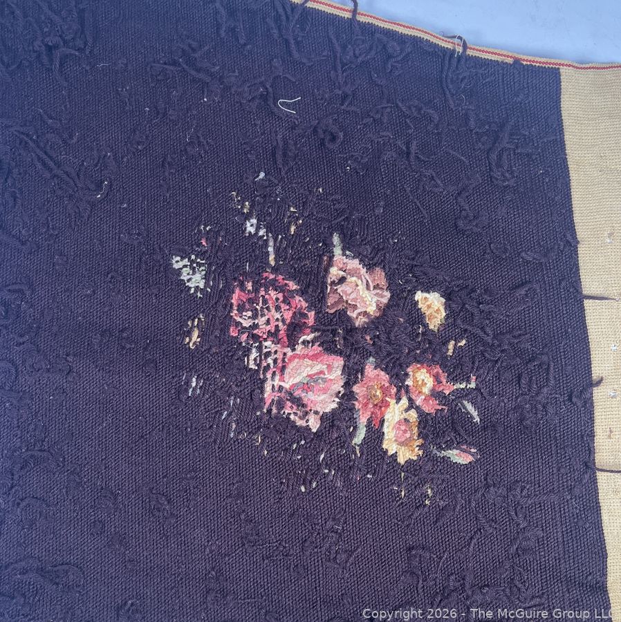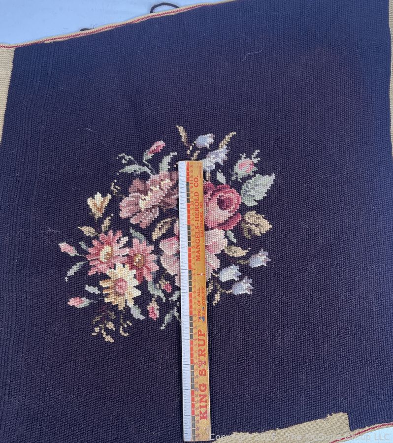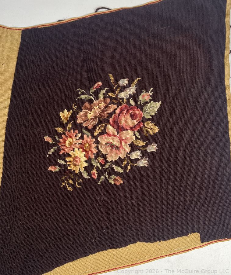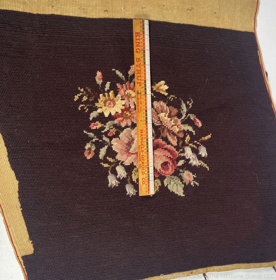 Lot #0218CPB: Brown Completed Needlework Needlepoint Canvas of Flowers