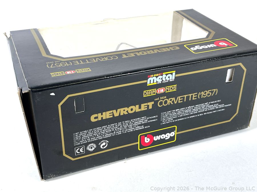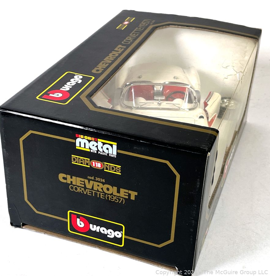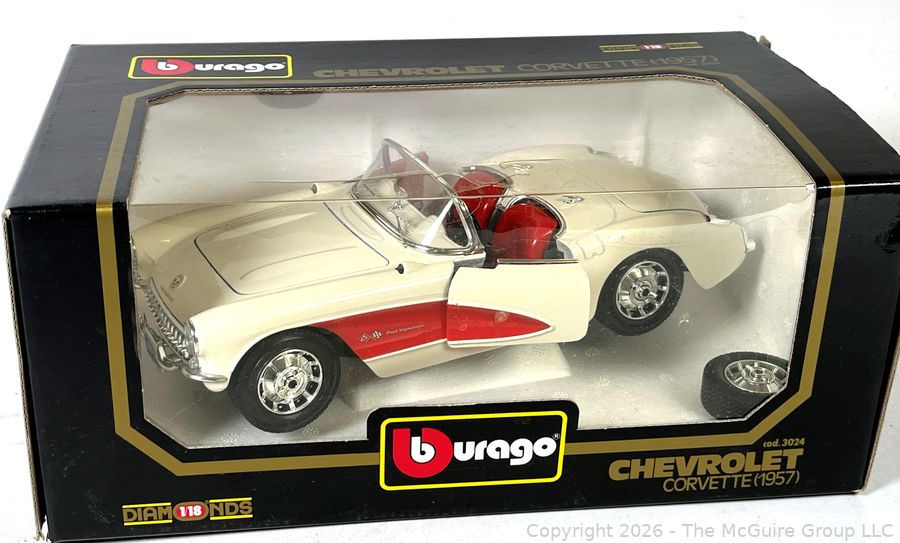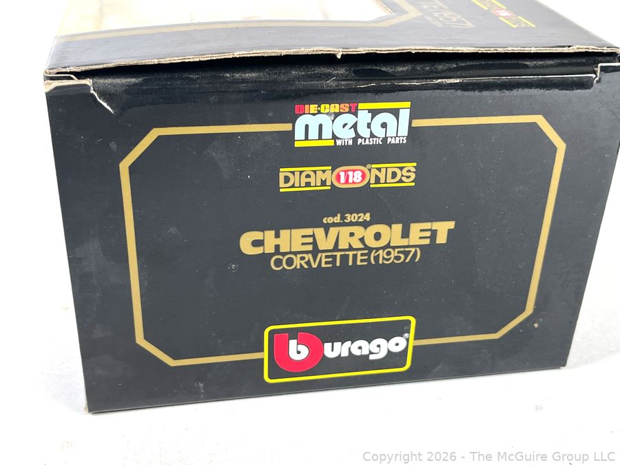 Lot #0021AFB: Burago 1957 Chevrolet Corvette Diecast Model Car Toy in Box