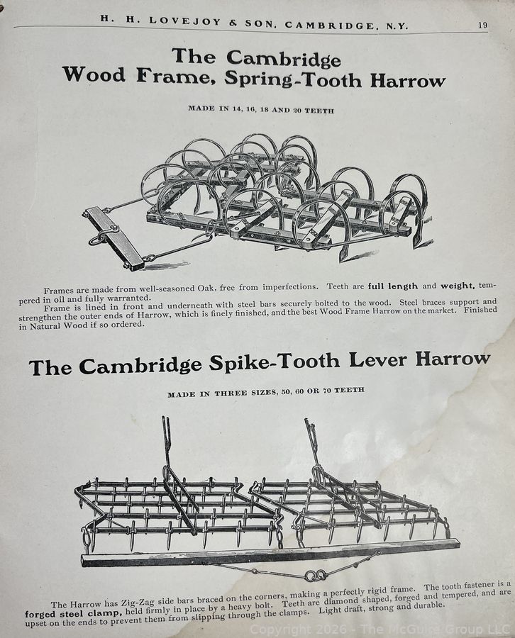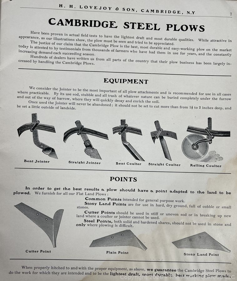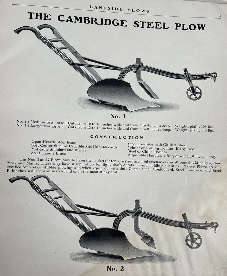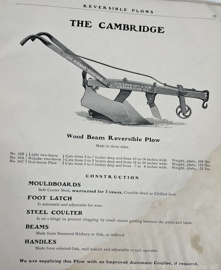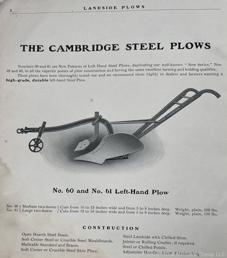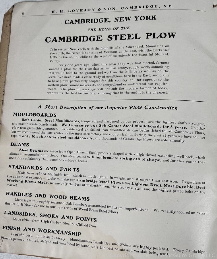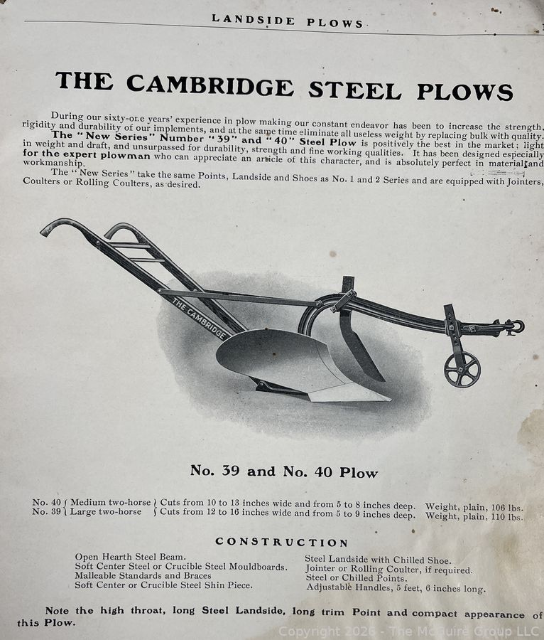 Lot #0073ACM: Cambridge Steel Plows and Farm Implements Catalog MM Lovejoy & Son, Cambridge NY, 1900's