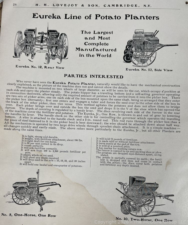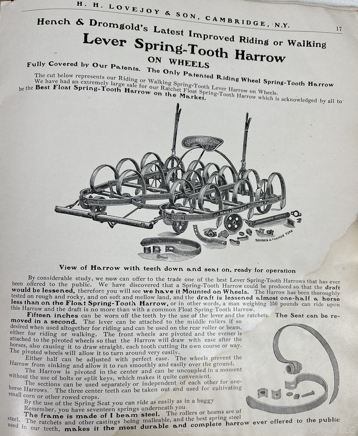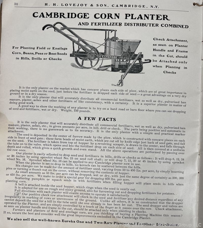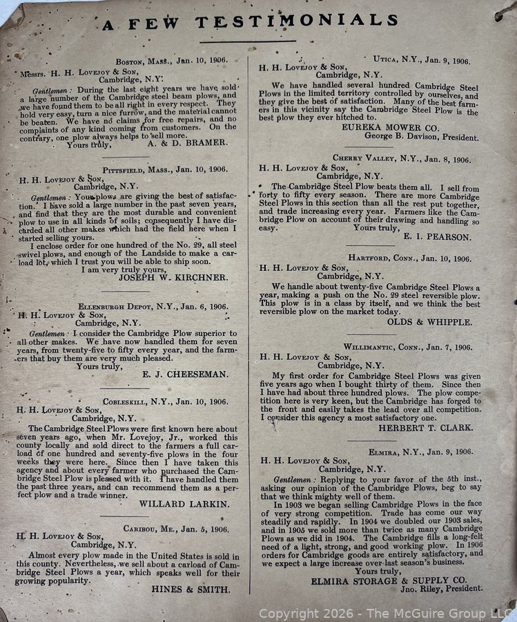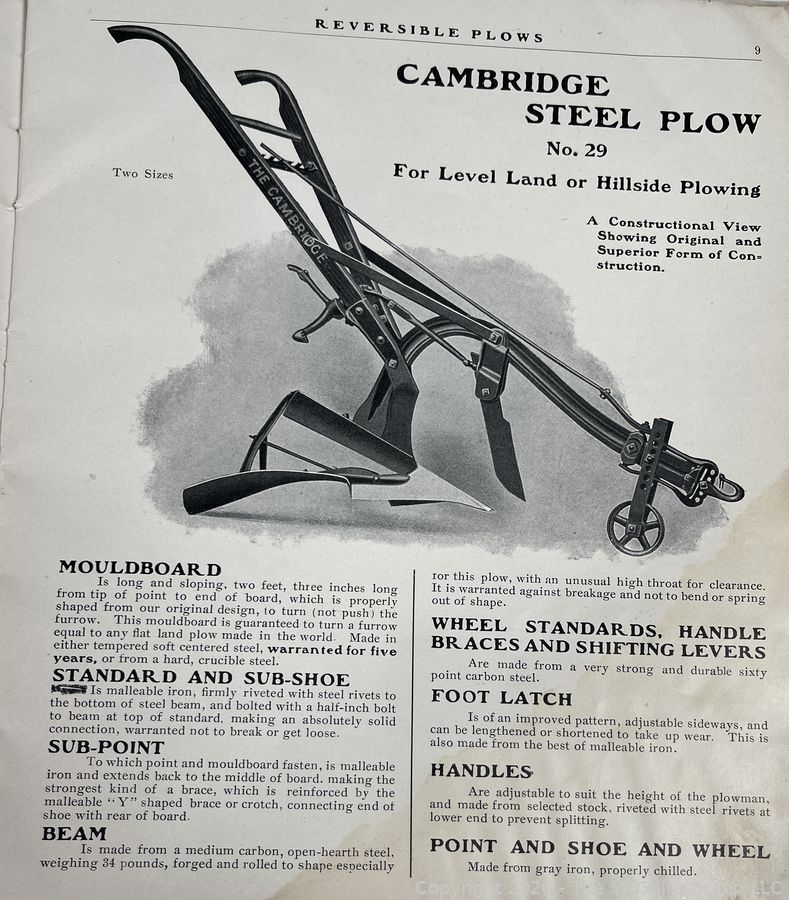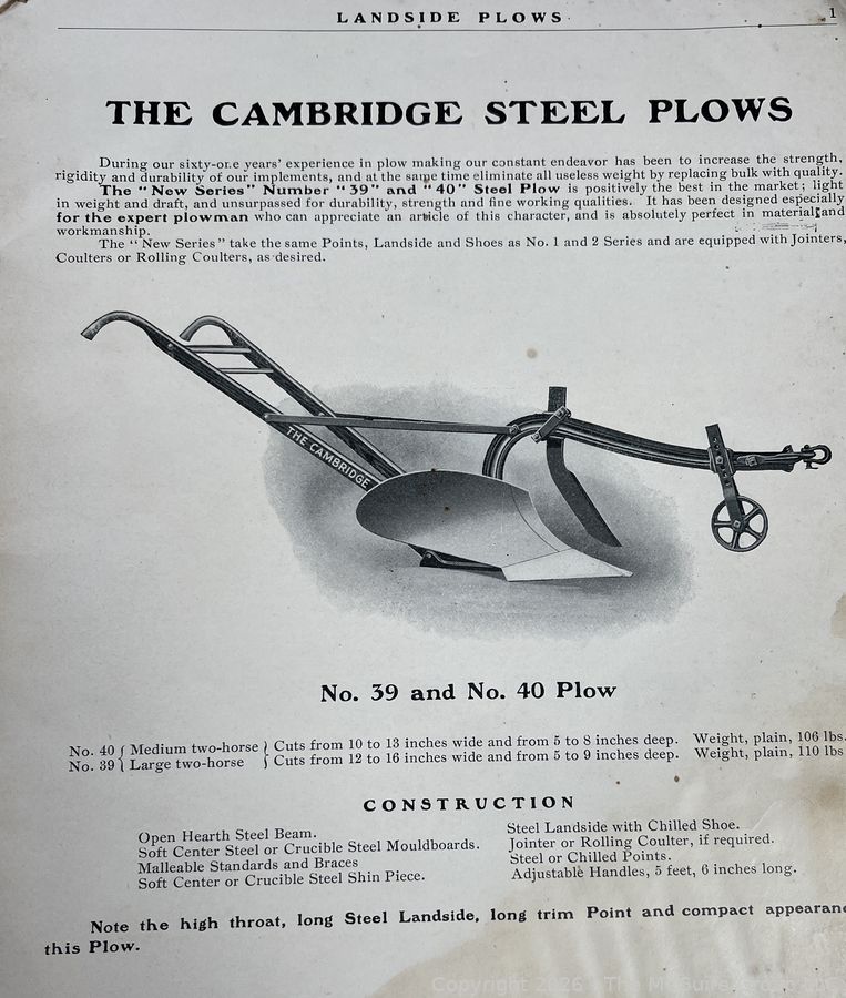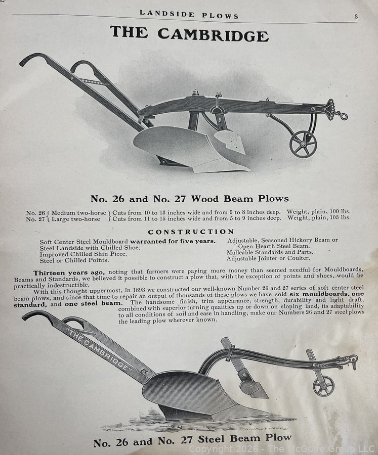 Lot #0073ACM: Cambridge Steel Plows and Farm Implements Catalog MM Lovejoy & Son, Cambridge NY, 1900's