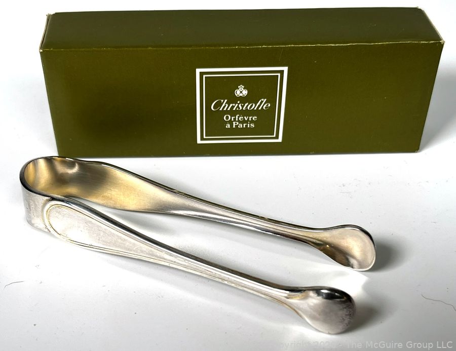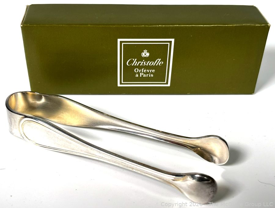 Lot #1010PB: Christofle Silver Plated Sugar Tongs, Albi Pattern in Box