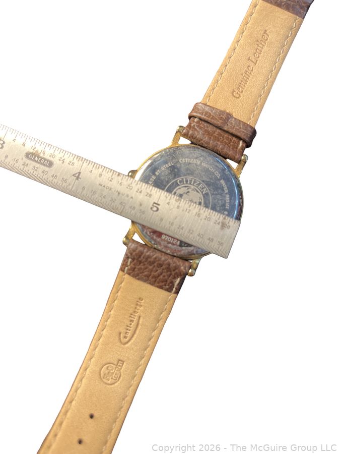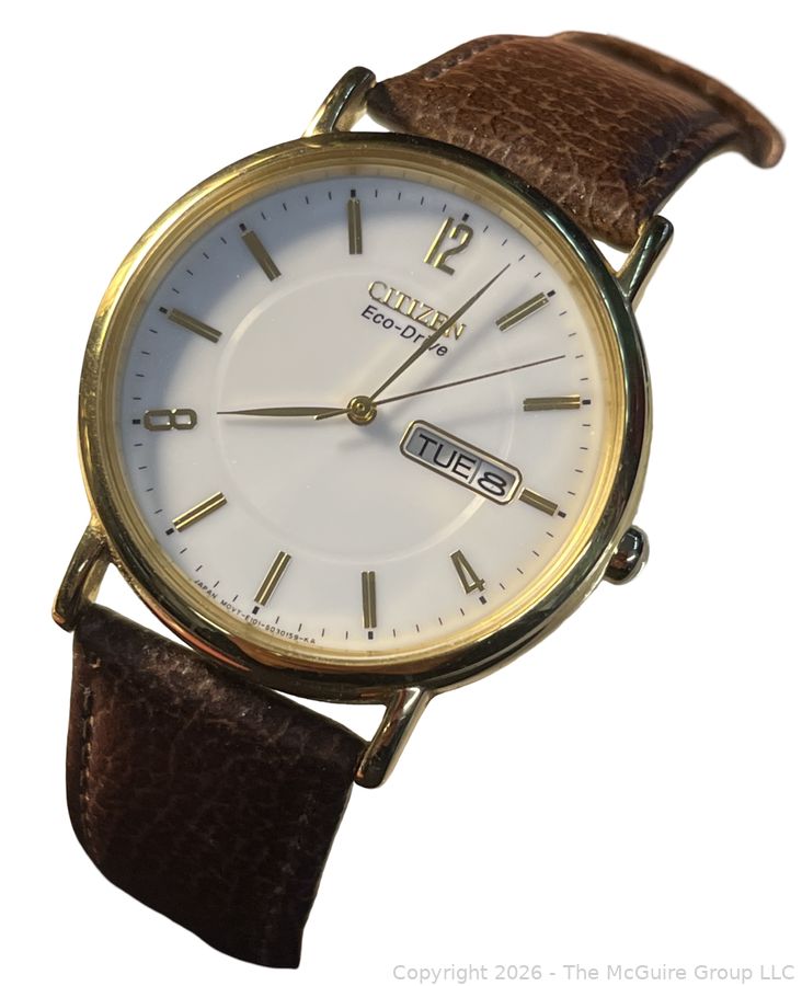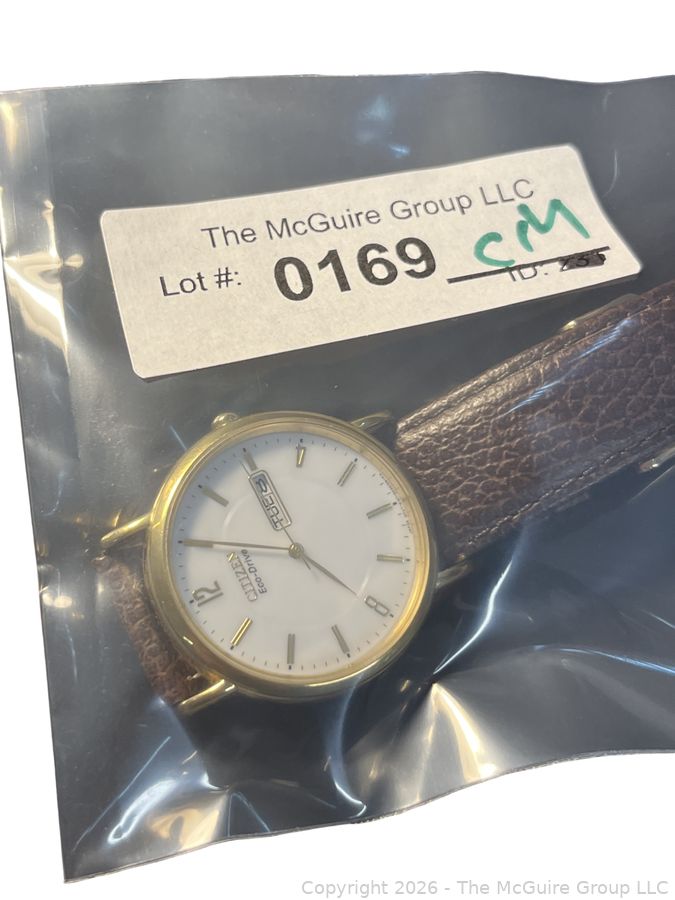 Lot #0169CM: Citizen Men's Eco Drive Day/Date Wrist Watch, leather band