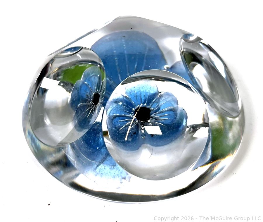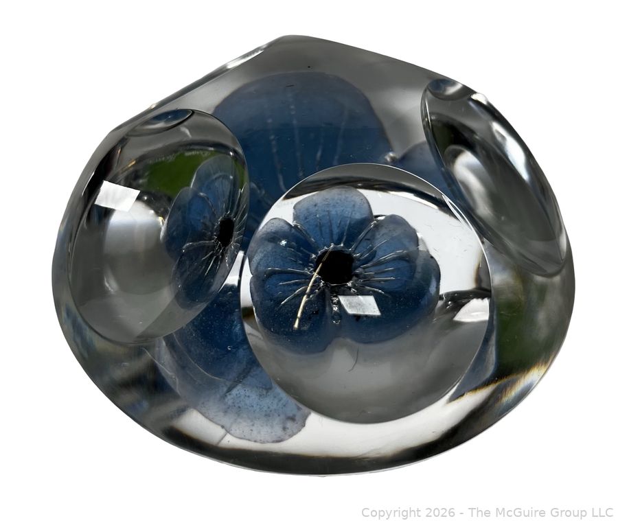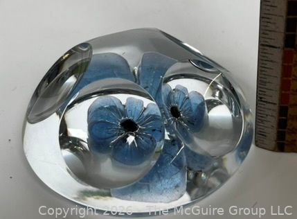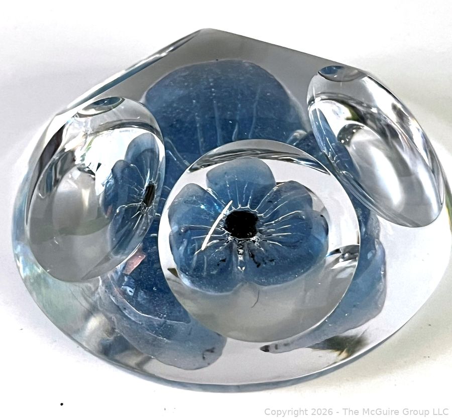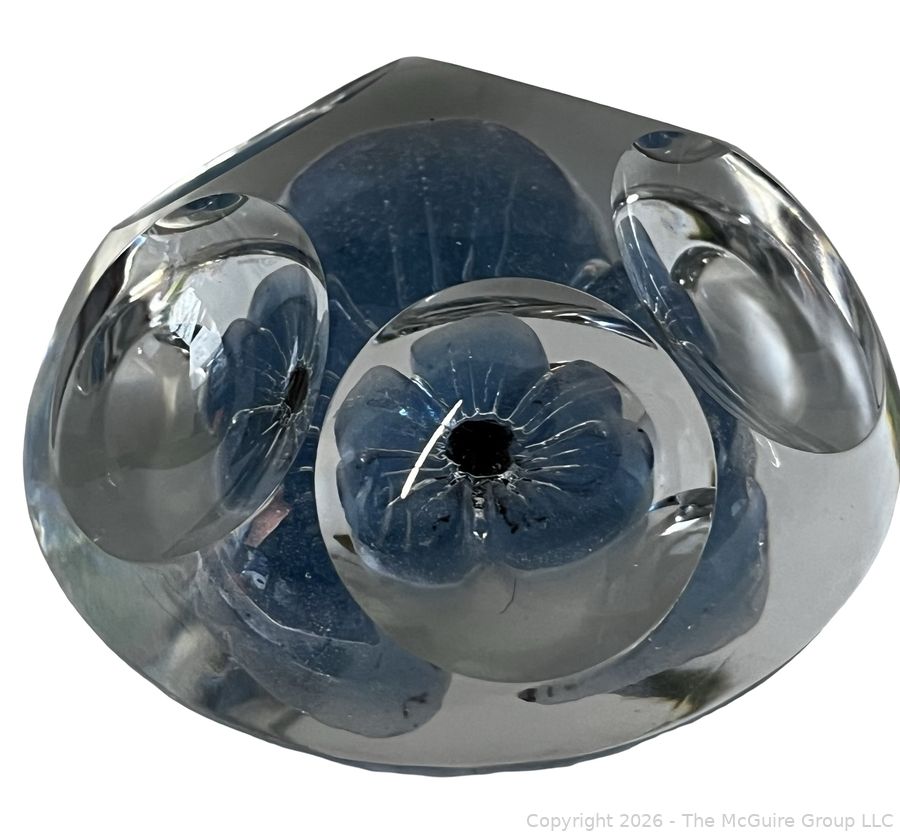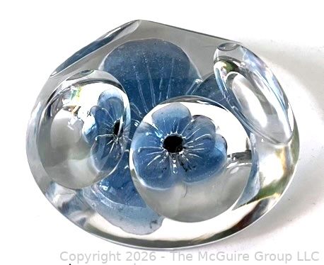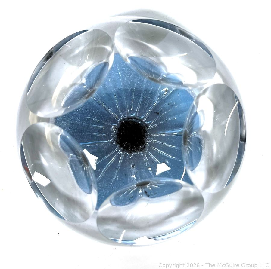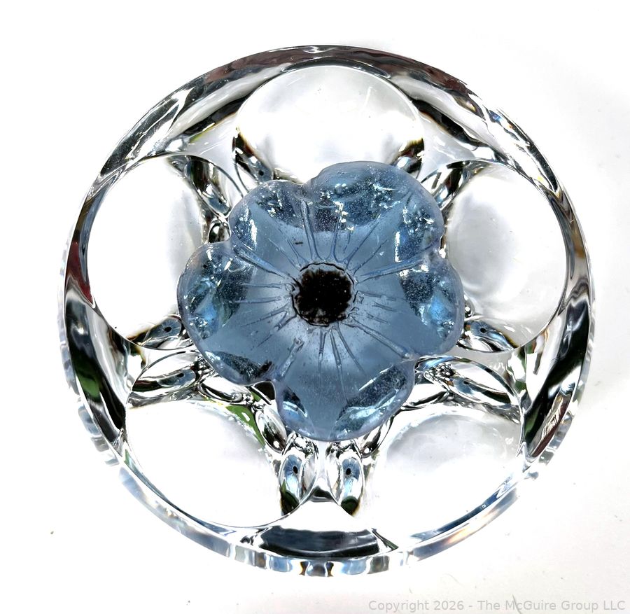 Lot #0147PB: Daum France Crystal Paperweight with a Light Blue Flower and Five Windows