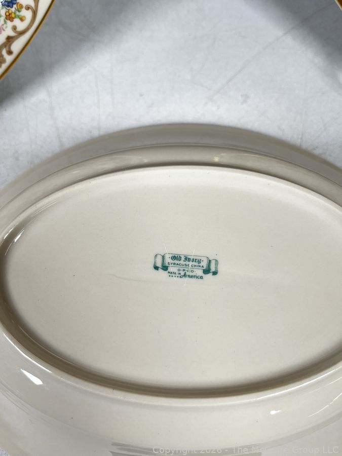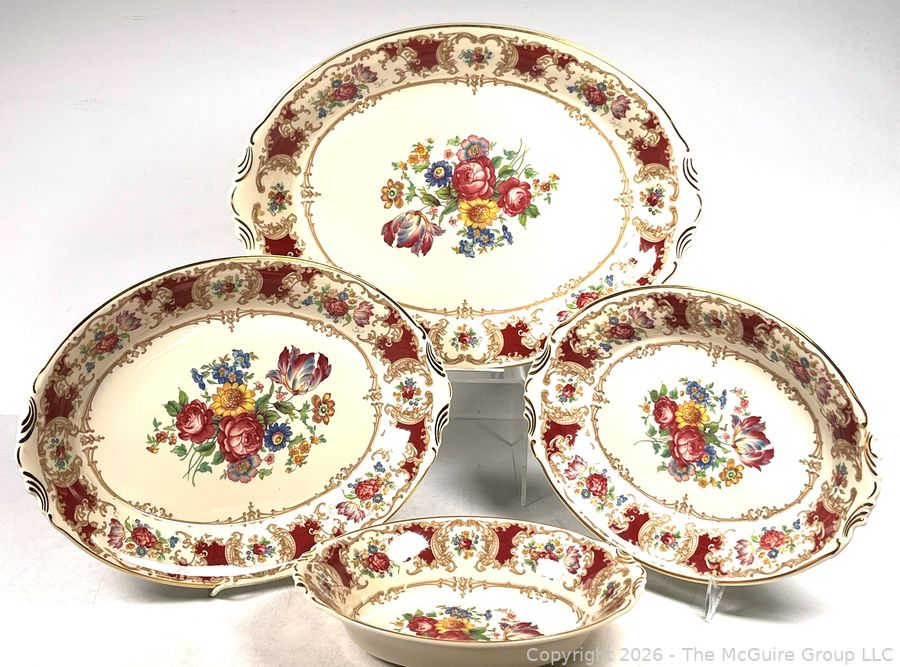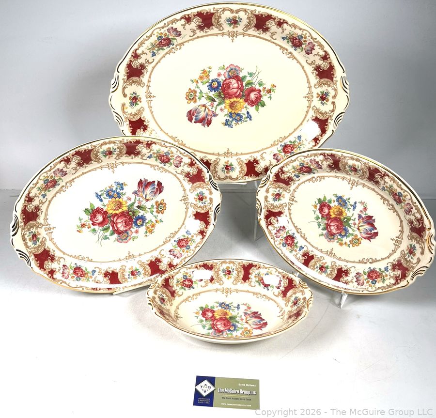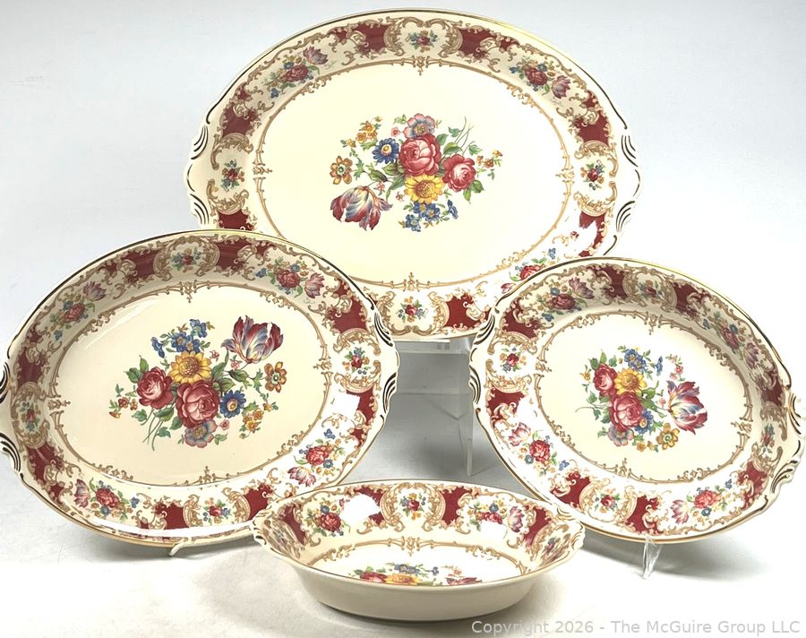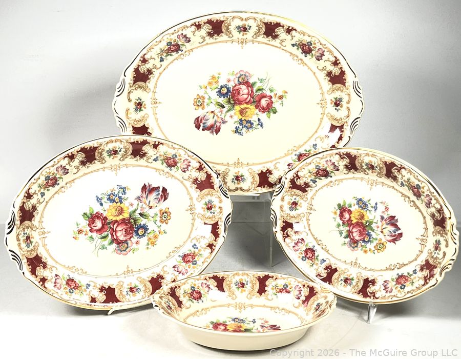 Lot #0099MB: Four (4) Syracuse China Old Ivory Romance Maroon Platters