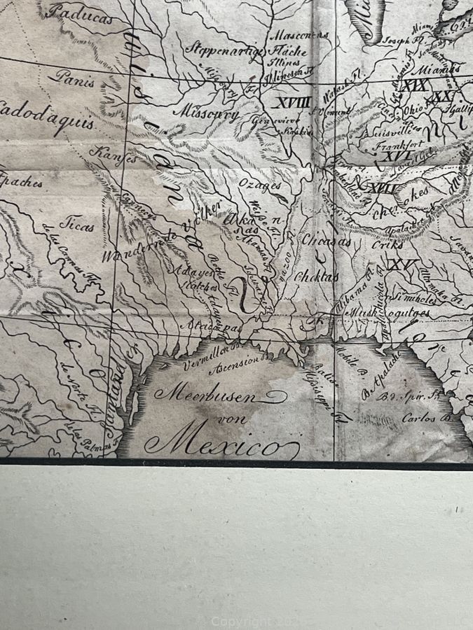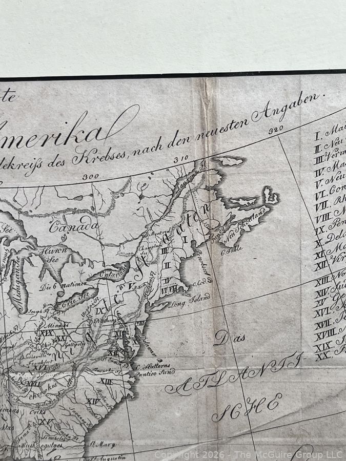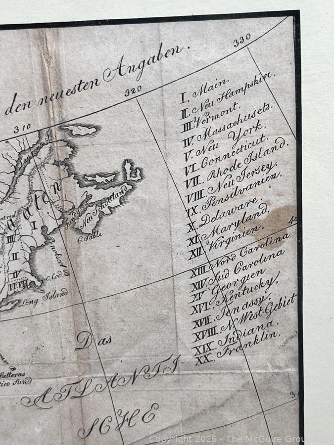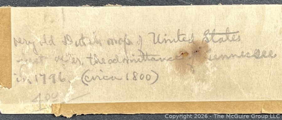 Lot #0038DW: Framed Under Glass 1796 Dutch Map of the United States with the Admittance of Tennessee