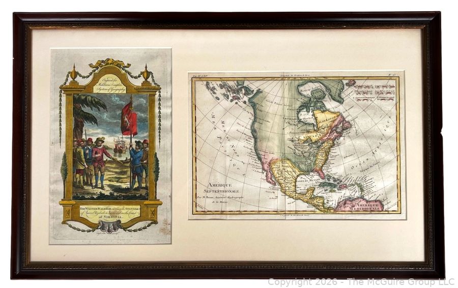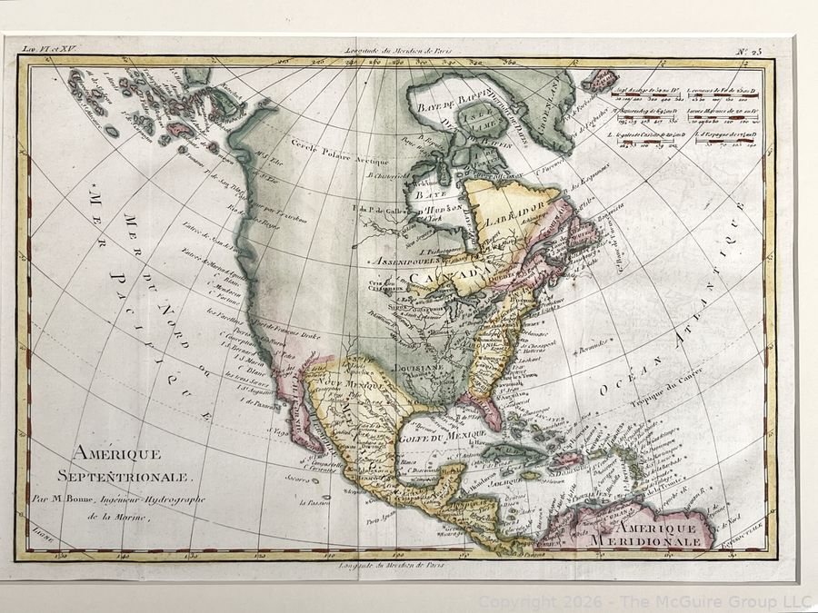 Lot #0053DW: Framed Under Glass c. 1780 French Map, Amerique Septentrionale. Par M Bonne, Ingemeur-Hydrographe de la Morine,
