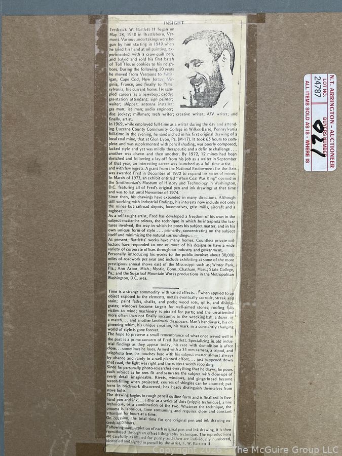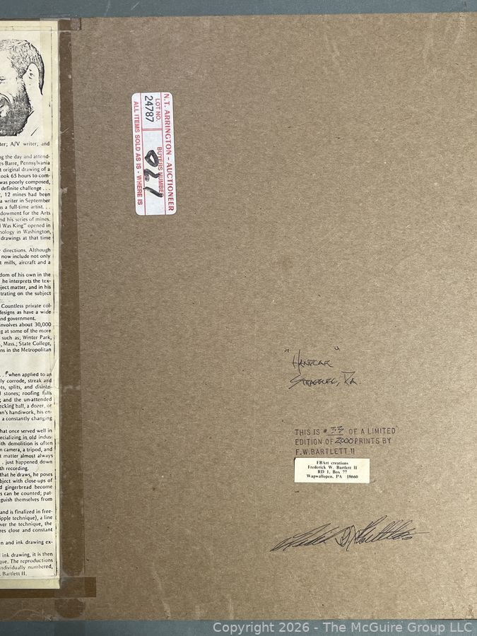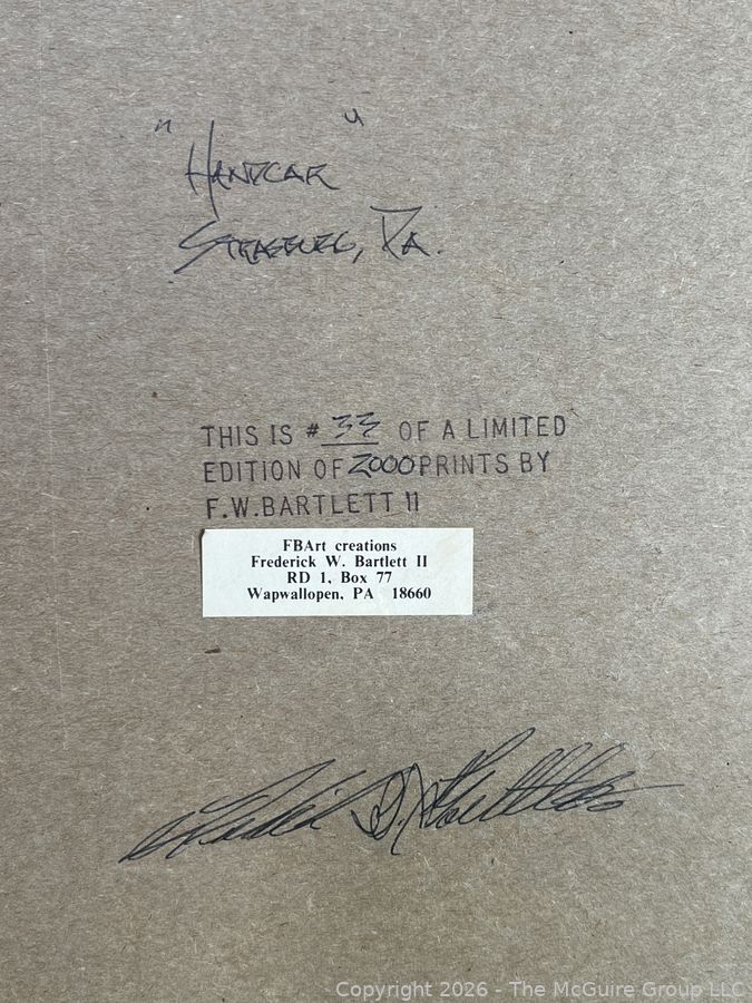 Lot #0144AFB: Framed Under Glass Signed and Numbered Print of Handcar, Strasburg, VA by FW Bartlett.