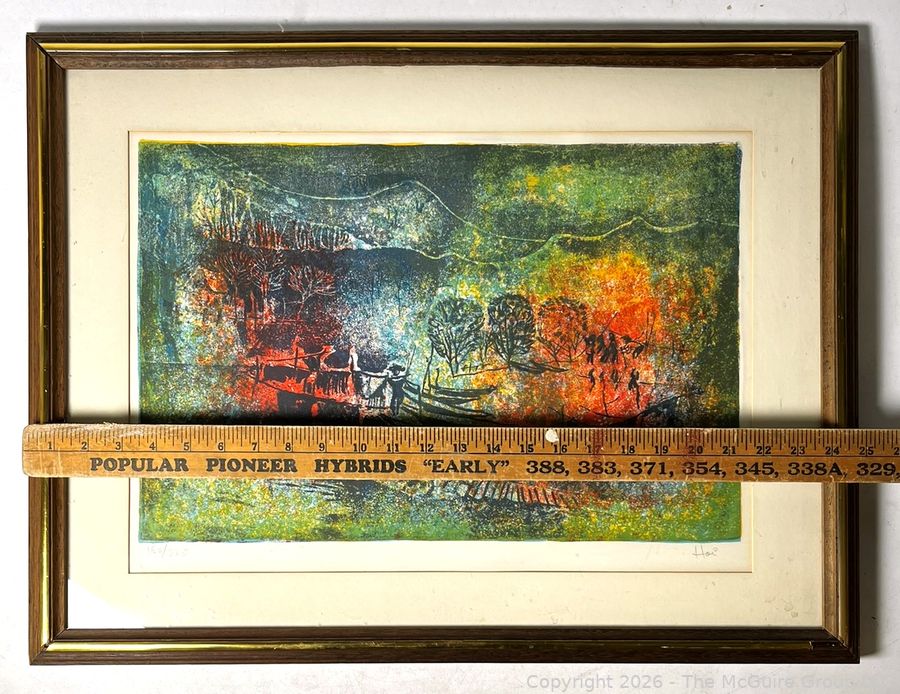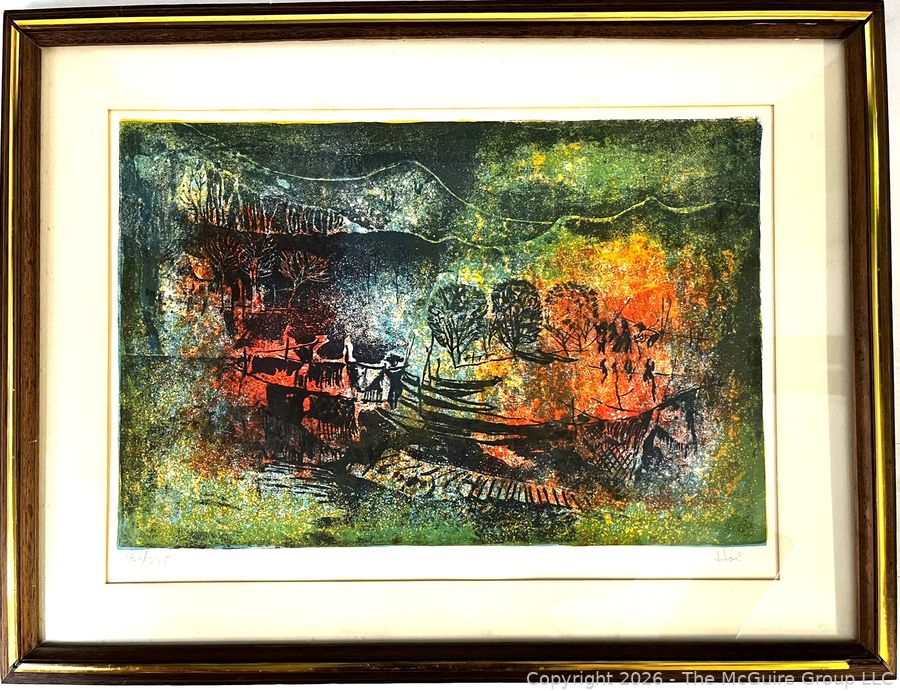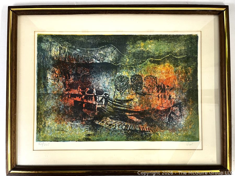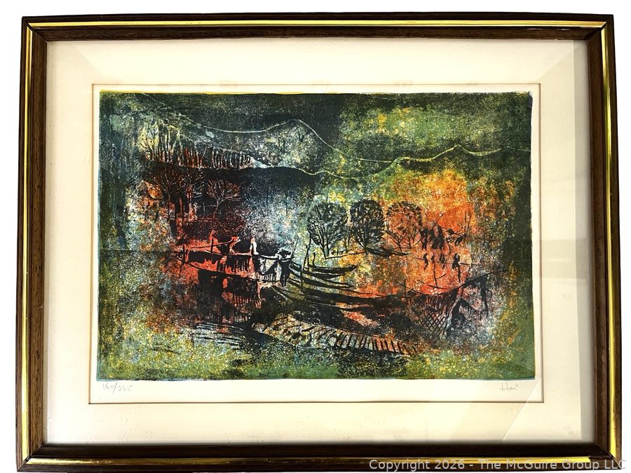 Lot #0160PBA: Framed Under Glass Titled Docked Boats 5 Signed and Numbered Lithograph by Hoi Lebadang . 19" x 25"