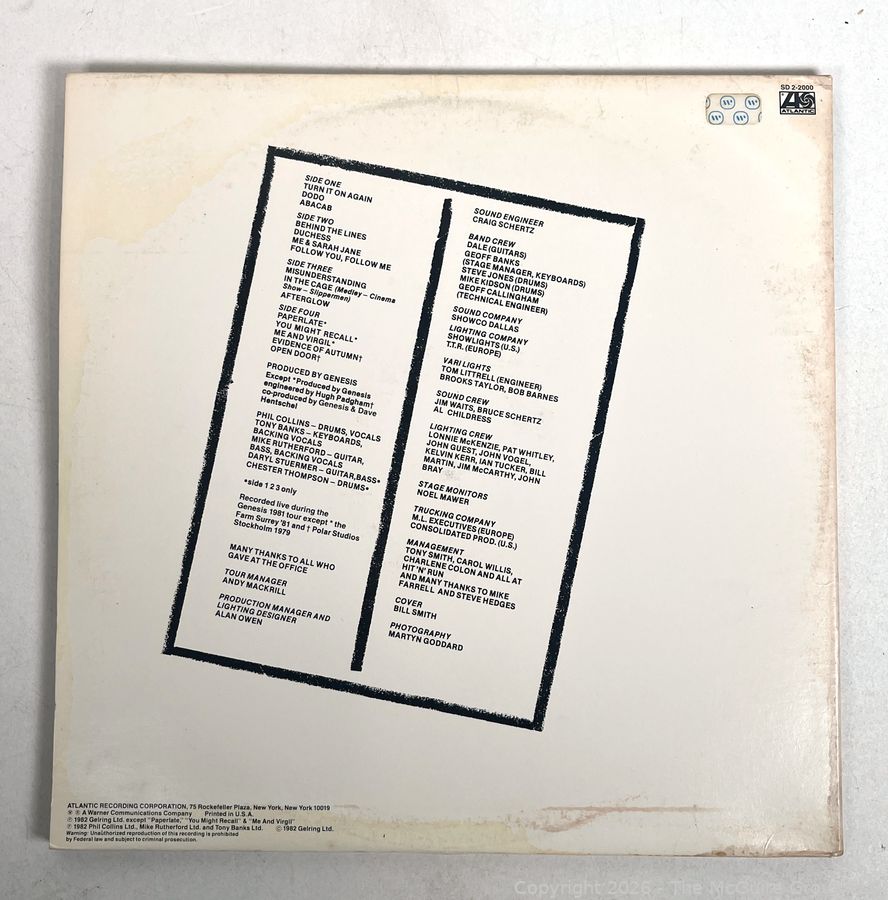 Lot #0157BE: Genesis – Three Sides Live Vinyl LP Record Album, 1982