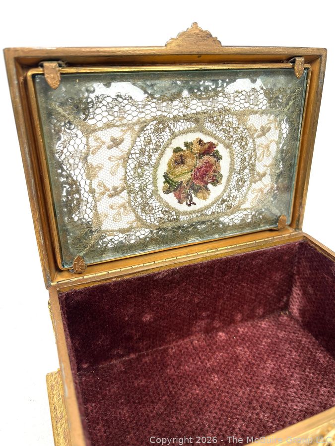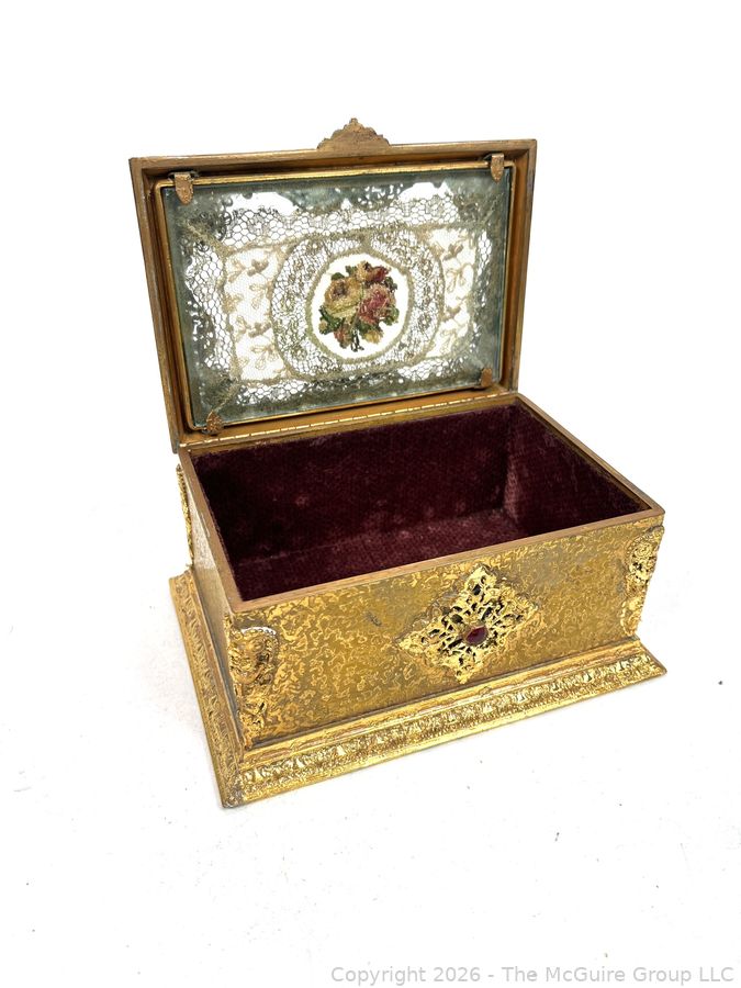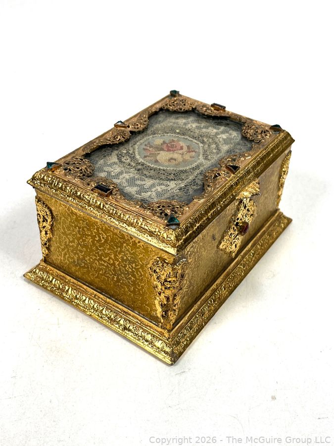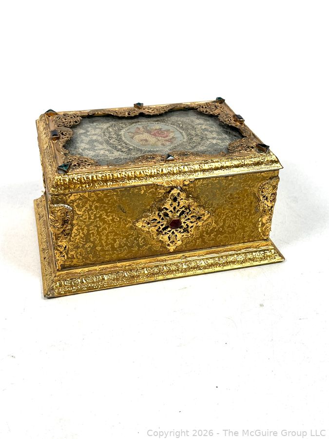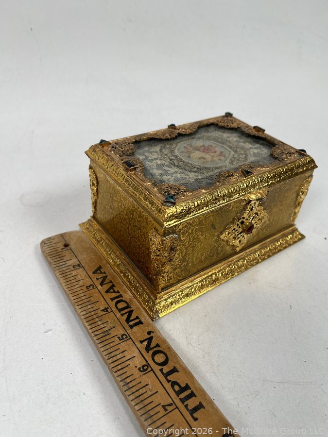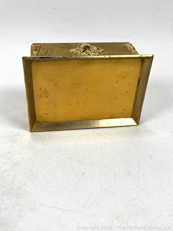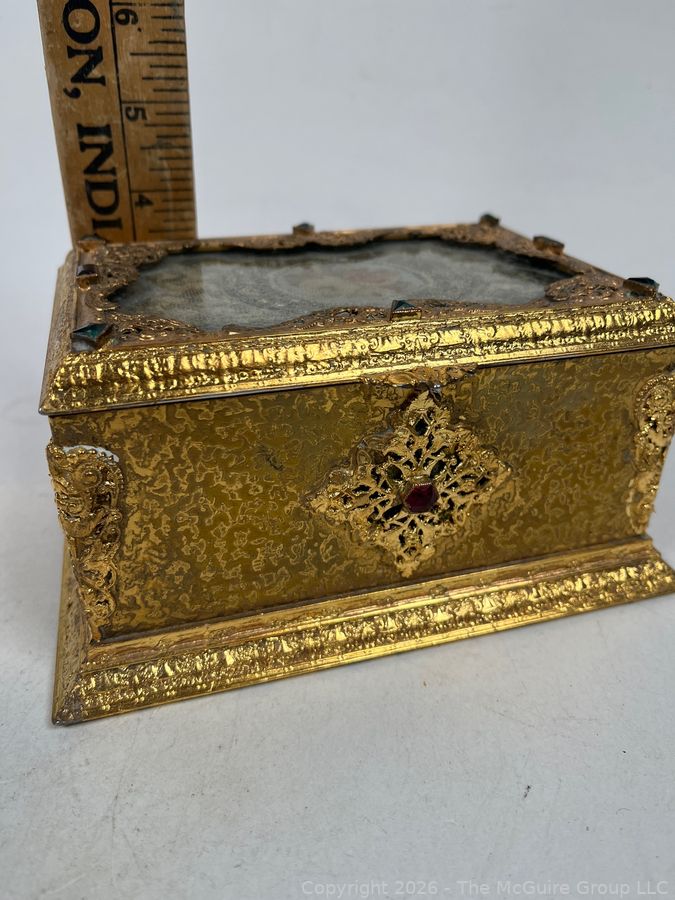 Lot #0001CP: Gilt Metal 19th C French Vanity Box, Ornate High Relief Decoration and Hinged Lid.
