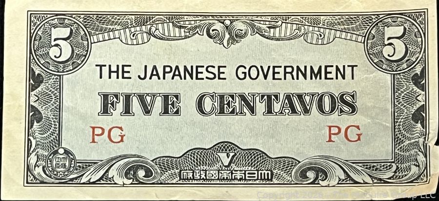 Lot #0266CM: Japanese Government-Issued Philippine 5 Centavos Banknote.