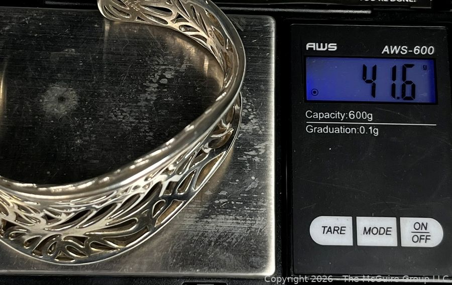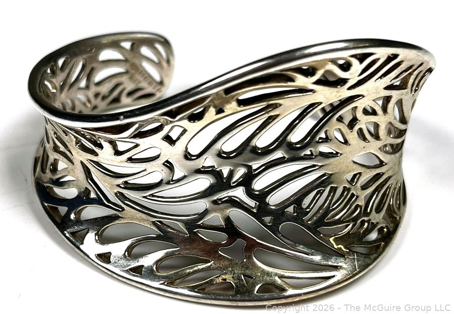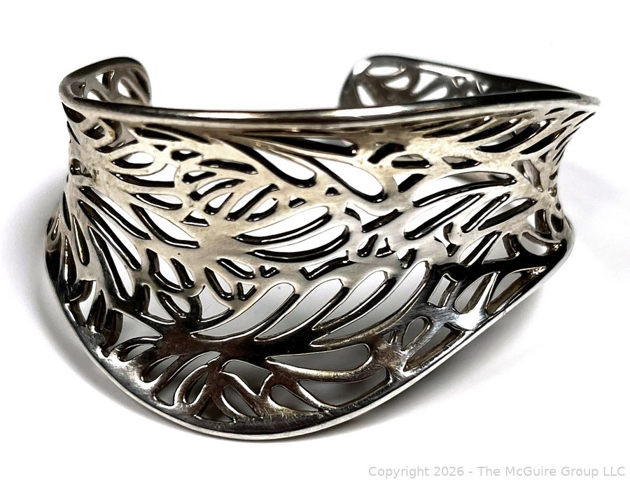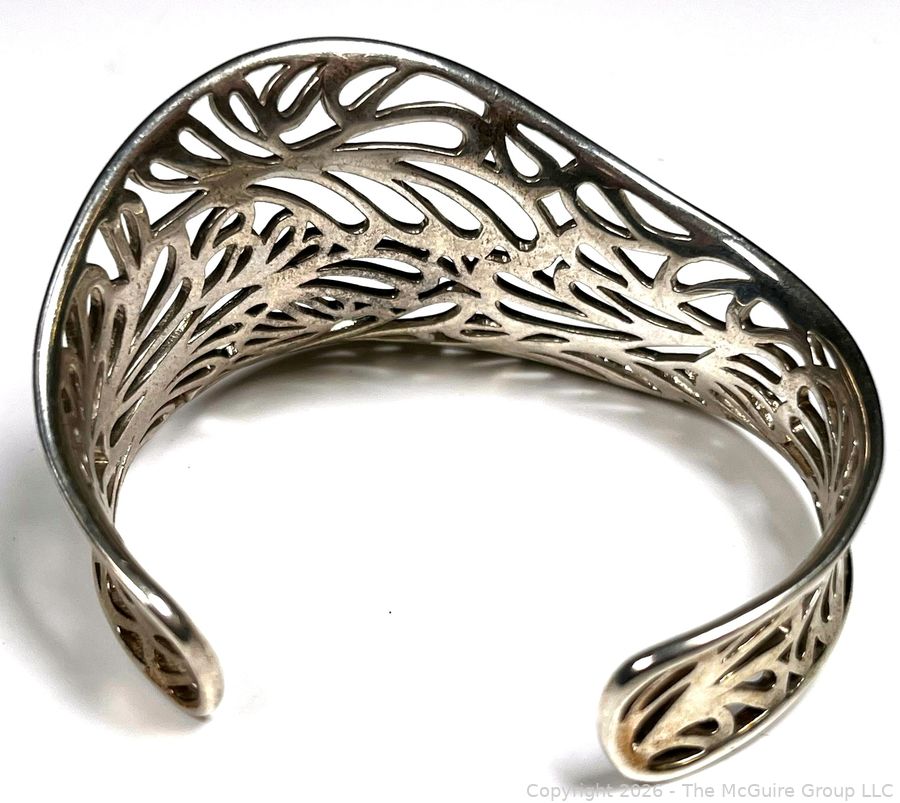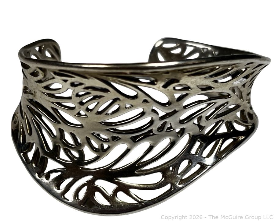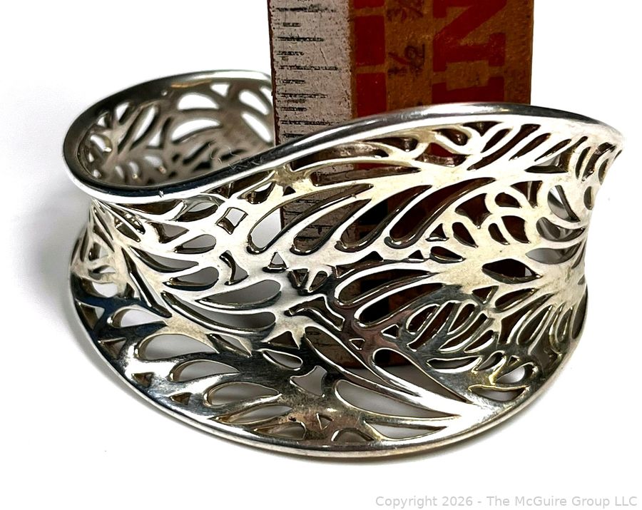 Lot #0282CP: Kit Heath Open Work Sterling Silver Cuff Bracelet. 41 grams