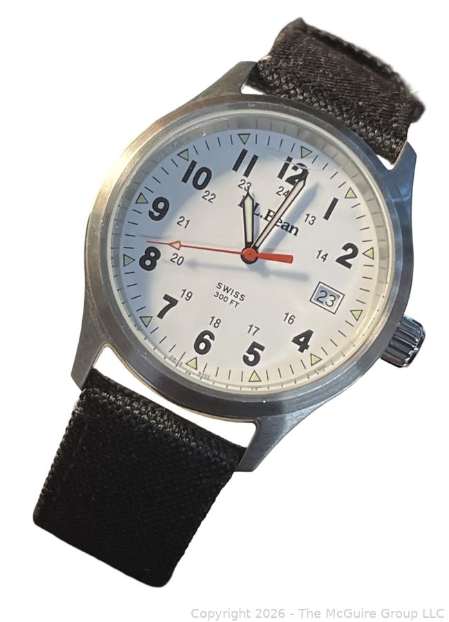 Lot #0079CM: L.L. Bean Swiss Quartz Analog Watch White Dial 300ft WR/Lume/Date