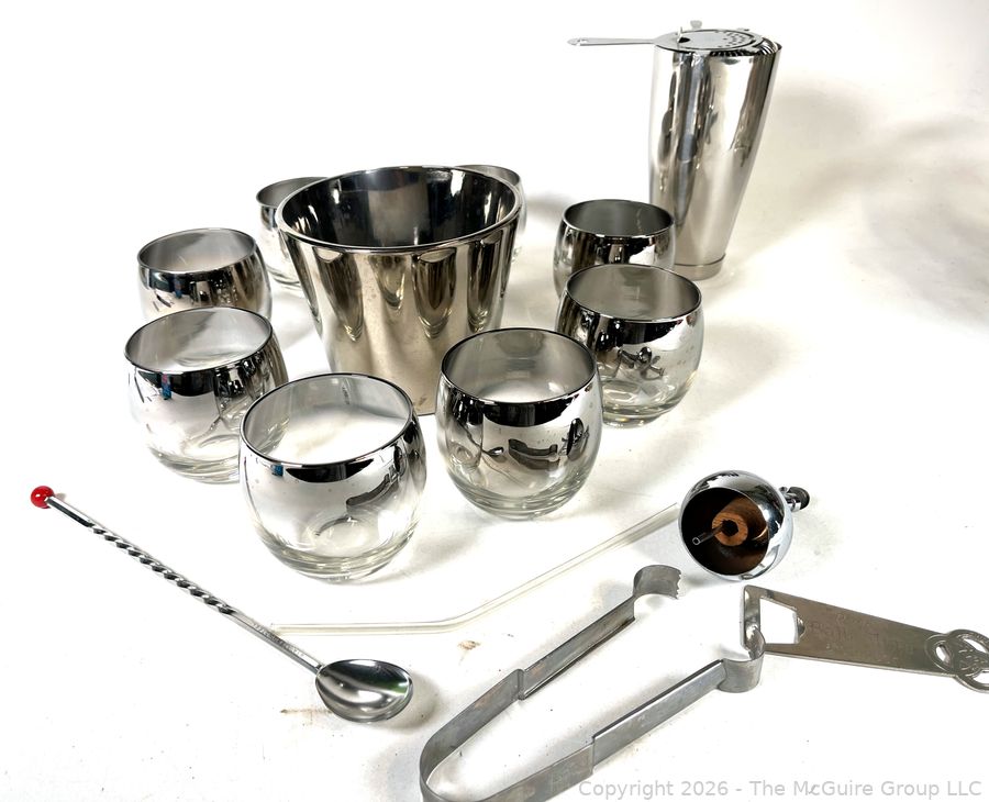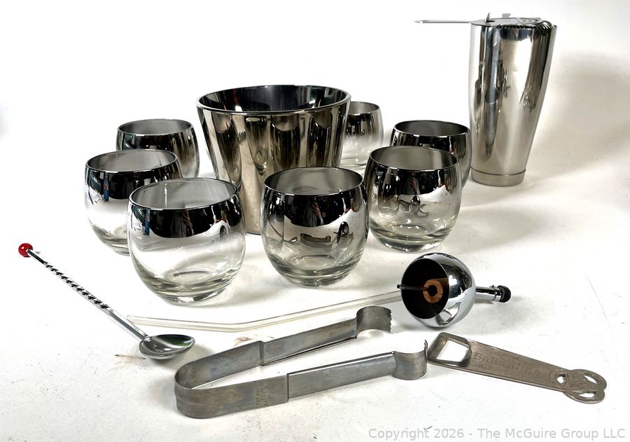 Lot #0018AFB: Mid Century Silver Fade Bar Glass Cocktail Set
