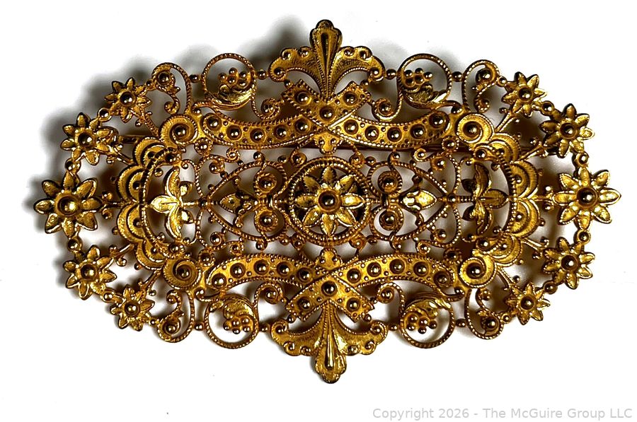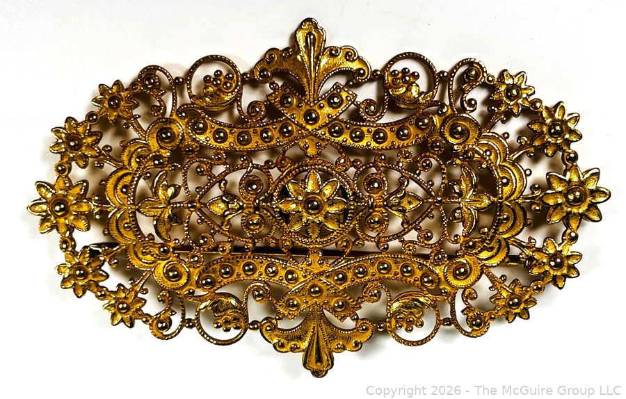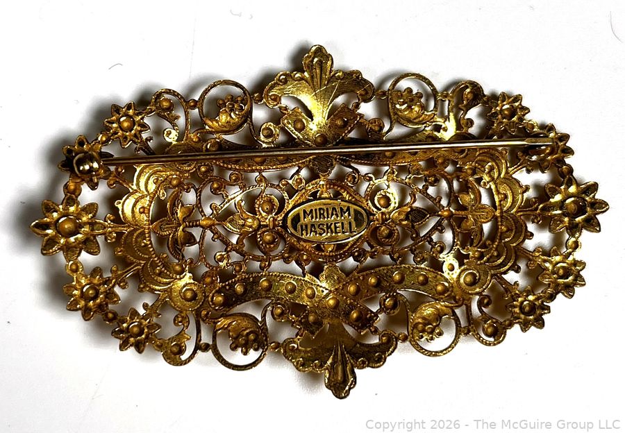 Lot #0111CP: Miriam Haskell Vintage Filigree Gold Tone Metal Brooch