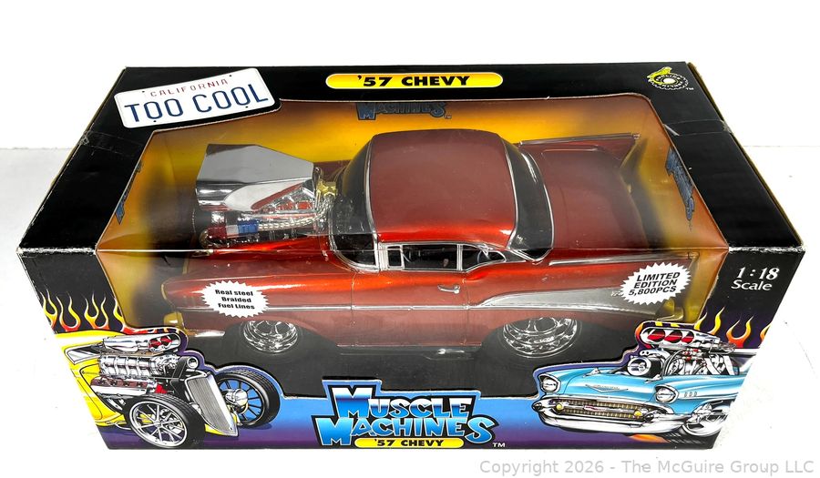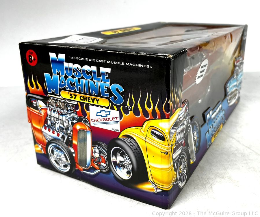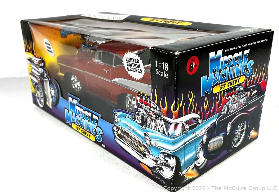 Lot #0213FBB: Muscle Machines 1957 CHEVY Bel-Air Burgundy Red Model in Box