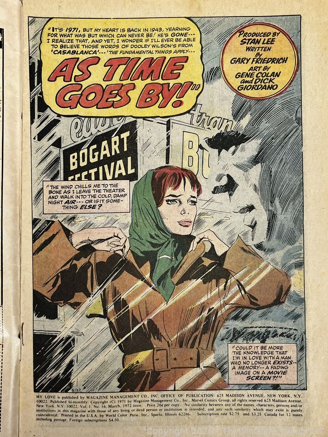 Lot #0168CP: My Love #16 March 1972 Romance Marvel Comic Book