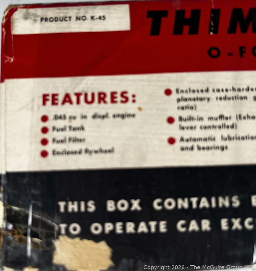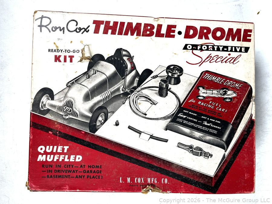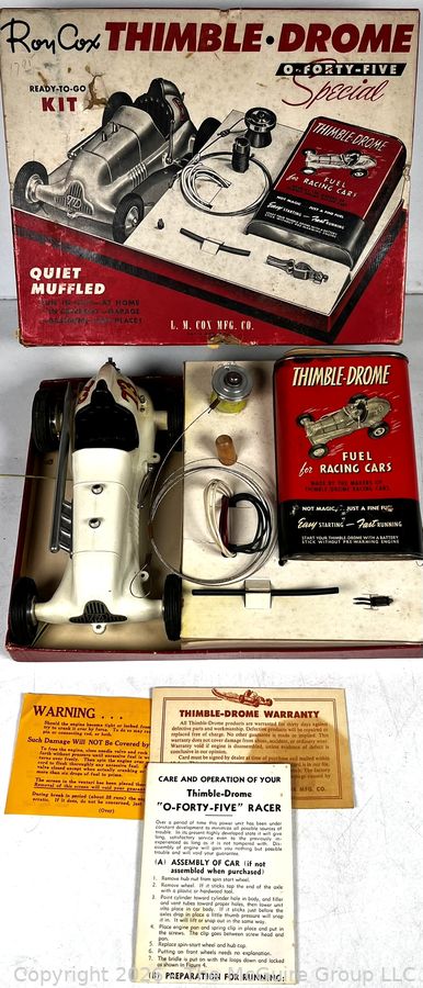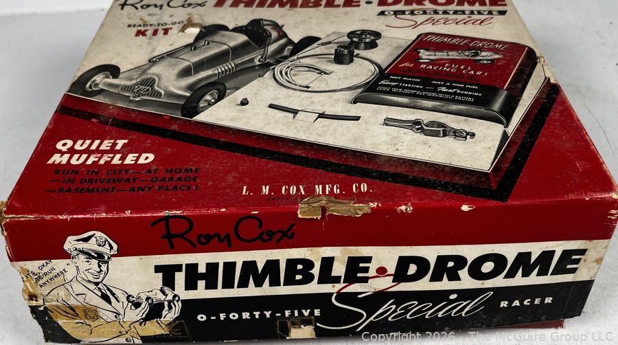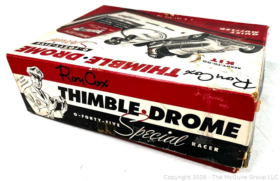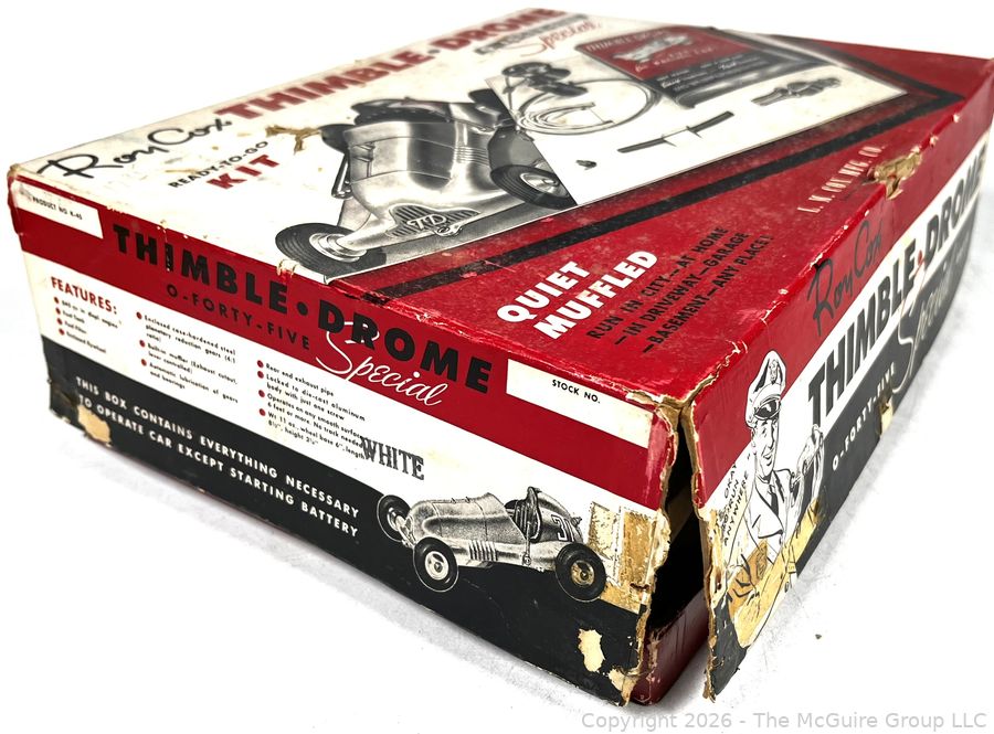 Lot #0060AFB: Original Roy Cox Special Engine Powered Thimble Drome Racing Car Box, O Forty Five