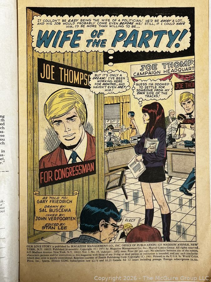 Lot #0159CP: Our Love Story #15 1972 Marvel Romance Comic Book (Stan Lee, Sal Buscema)