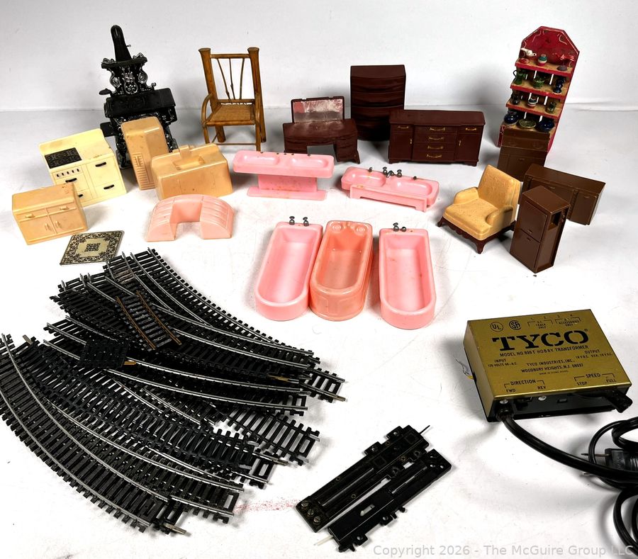 Lot #0360MB: Plastic Doll House Furniture and Tyco Model Train Tracks