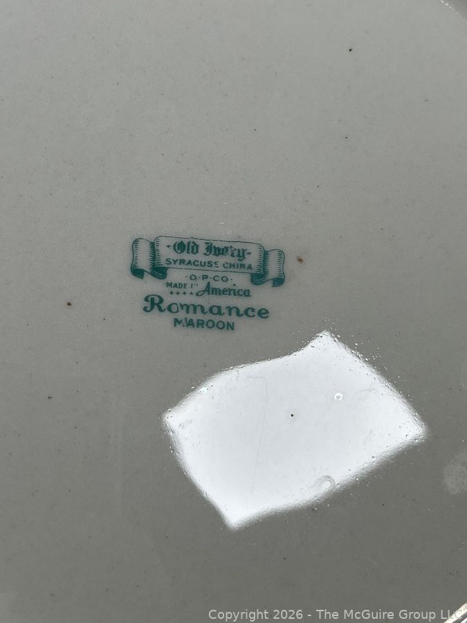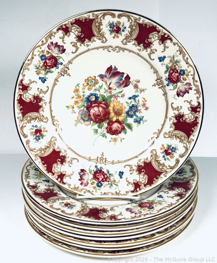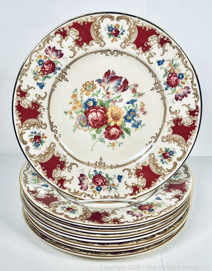 Lot #0216MB: Set of (8) Syracuse China Old Ivory Romance Maroon Plates