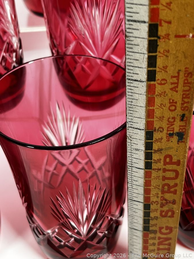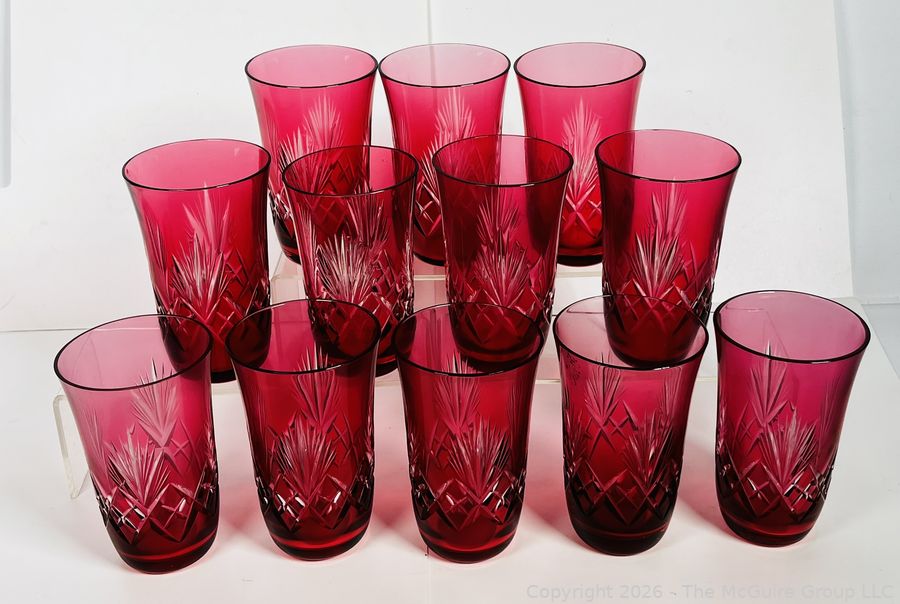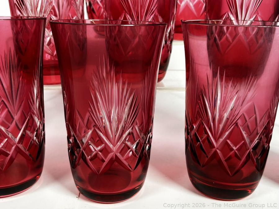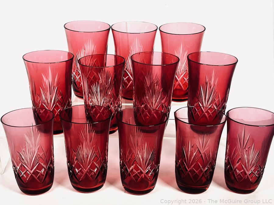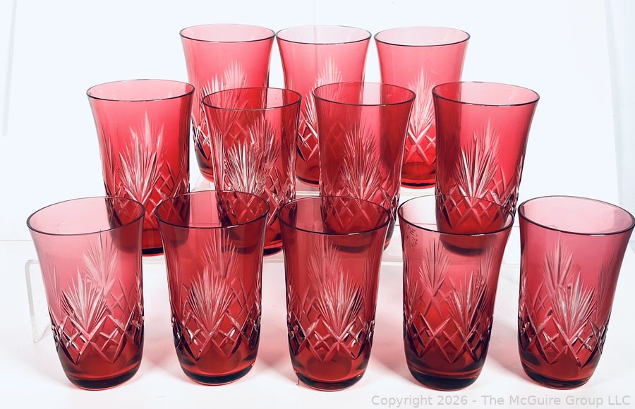 Lot #0186MB: Set of Twelve (12) Bohemian Cut to Clear Cranberry Red Glasses