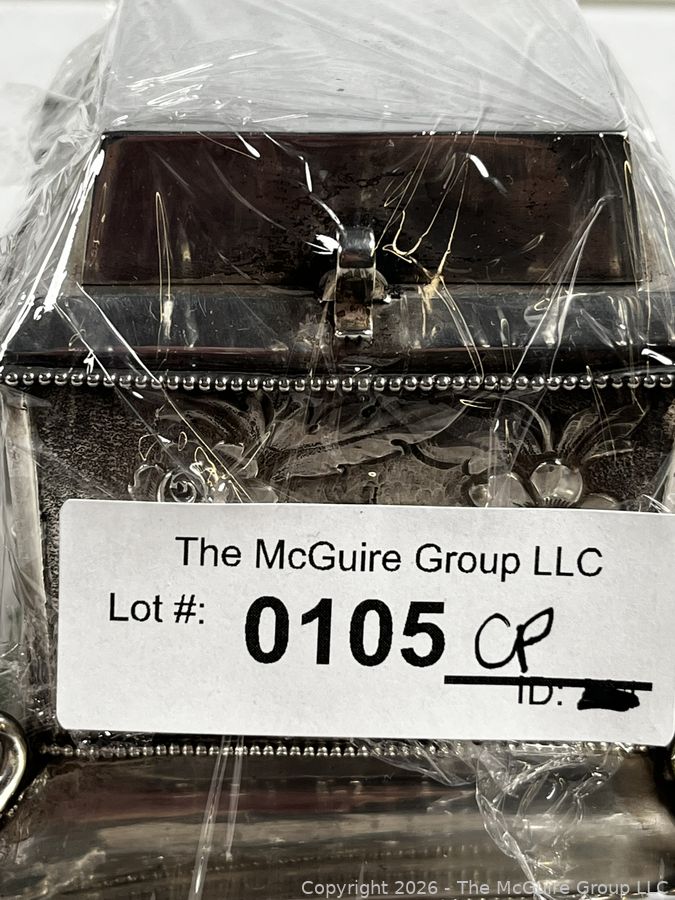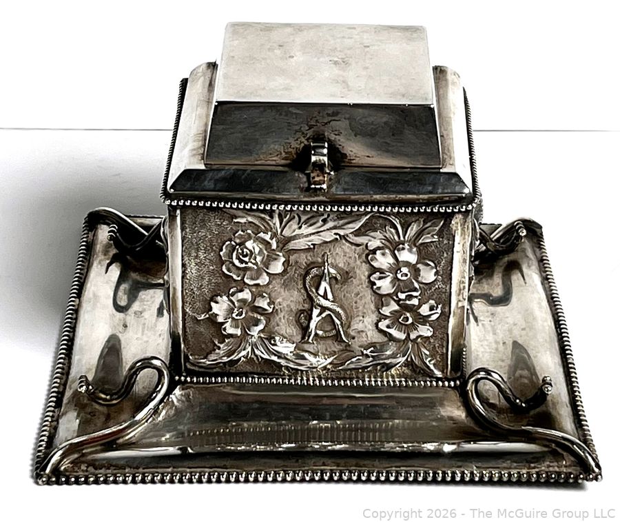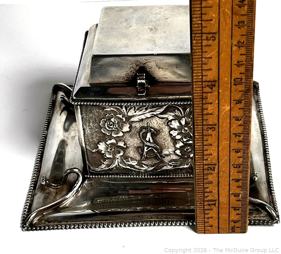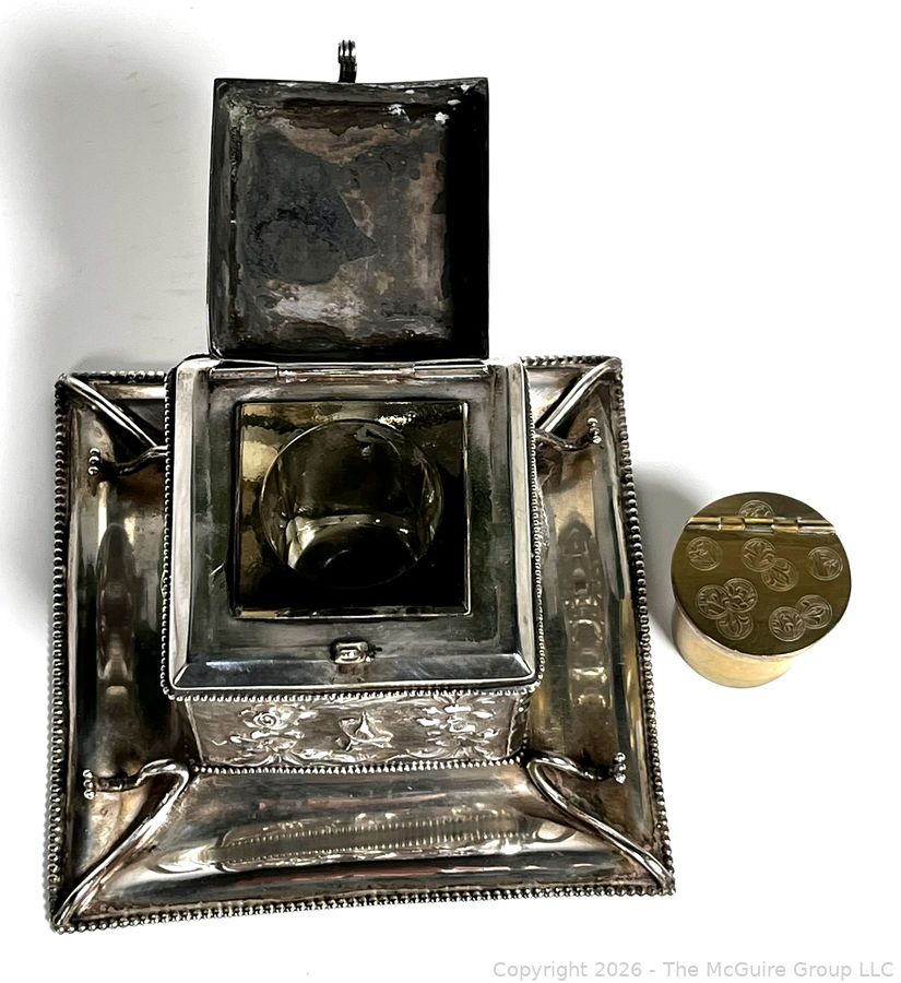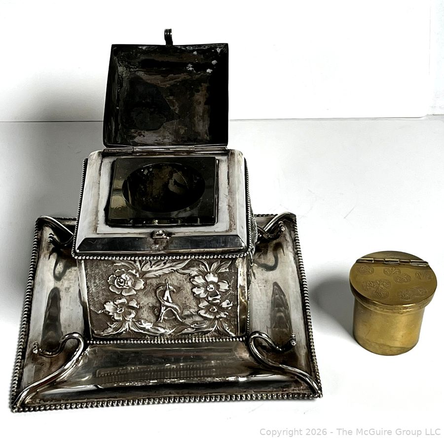 Lot #0105CP: Silver Plate Embossed Victorian Inkwell Stand